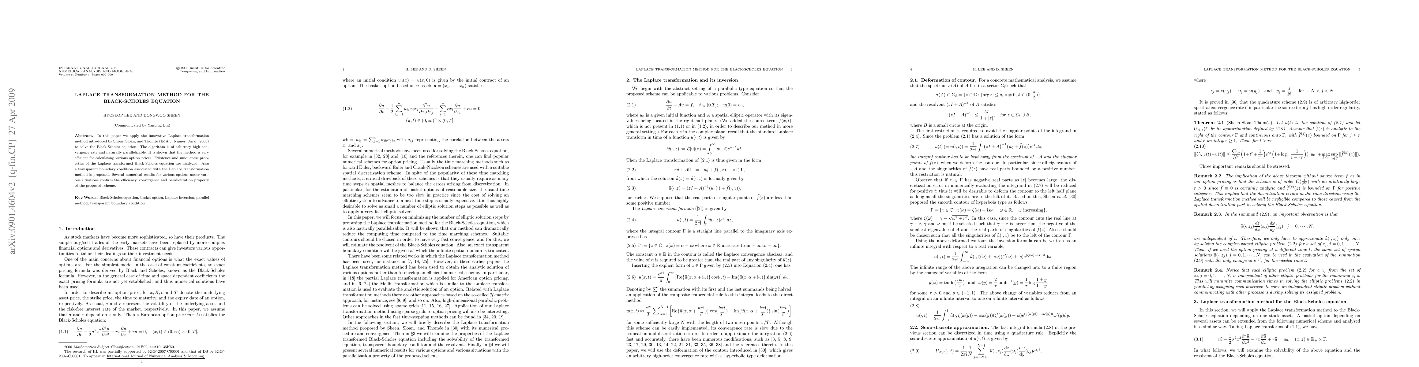 The paper applies the Laplace transformation method, introduced by Sheen, Sloan, and Thomée, to solve the Black-Scholes equation. The algorithm is of arbitrary high convergence rate and naturally parallelizable.