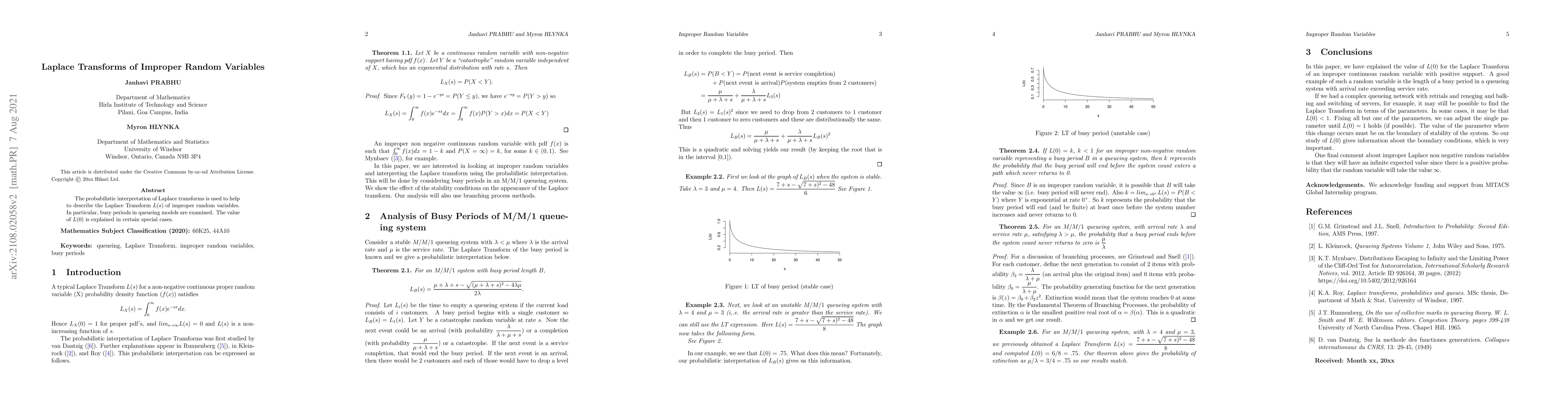 The probabilistic interpretation of Laplace transforms is used to help to describe the Laplace Transform $L(s)$ of improper random variables. In particular, busy periods in queueing models are examined. The value of $L(0)$ is explained in certain special cases.