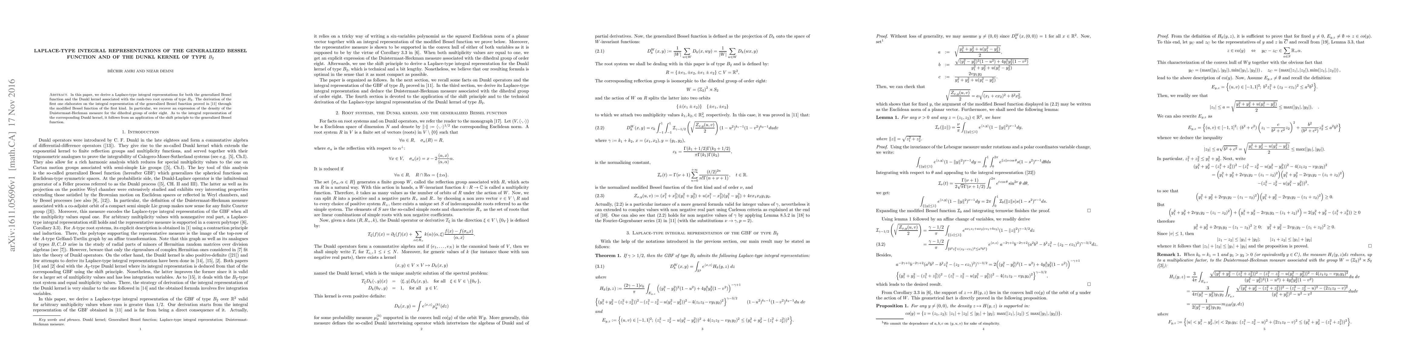 In this paper, we derive a Laplace-type integral representations for both the generalized Bessel function and the Dunkl kernel associated with the rank-two root system of type B_2. The derivation of the first one elaborates on the integral representation of the generalized Bessel function proved in \cite{Demni} through the modified Bessel function of the first kind. In particular, we recover an expression of the density of the Duistermaat-Heckman measure for the dihedral group of order eight. As to the integral representation of the corresponding Dunkl kernel, it follows from an application of the shift principle to the generalized Bessel function.