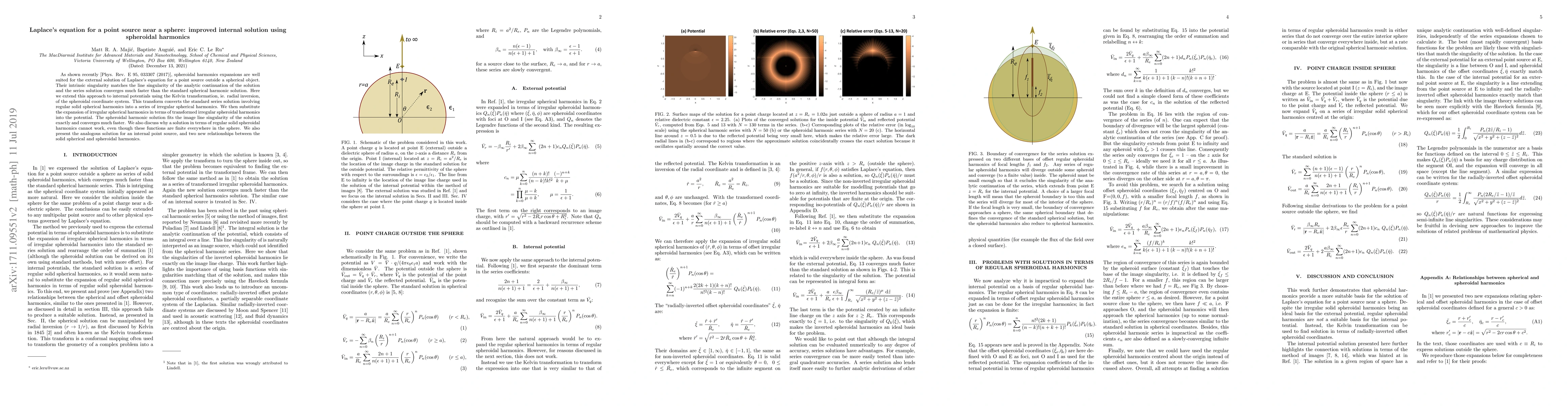 This paper extends the use of spheroidal harmonics to improve the internal solution of Laplace's equation for a point source near a sphere, utilizing the Kelvin transformation. The new approach converges faster than traditional spherical harmonics and fits the singularity of the solution precisely.