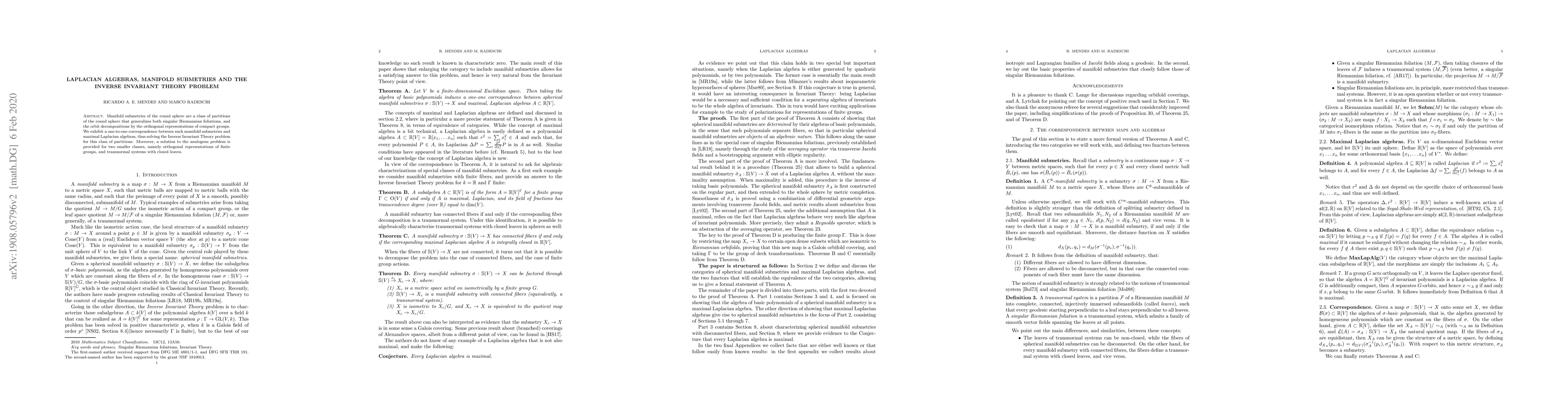 The paper establishes a one-to-one correspondence between manifold submetries of the round sphere and maximal Laplacian algebras, solving the Inverse Invariant Theory problem for a specific class of partitions.