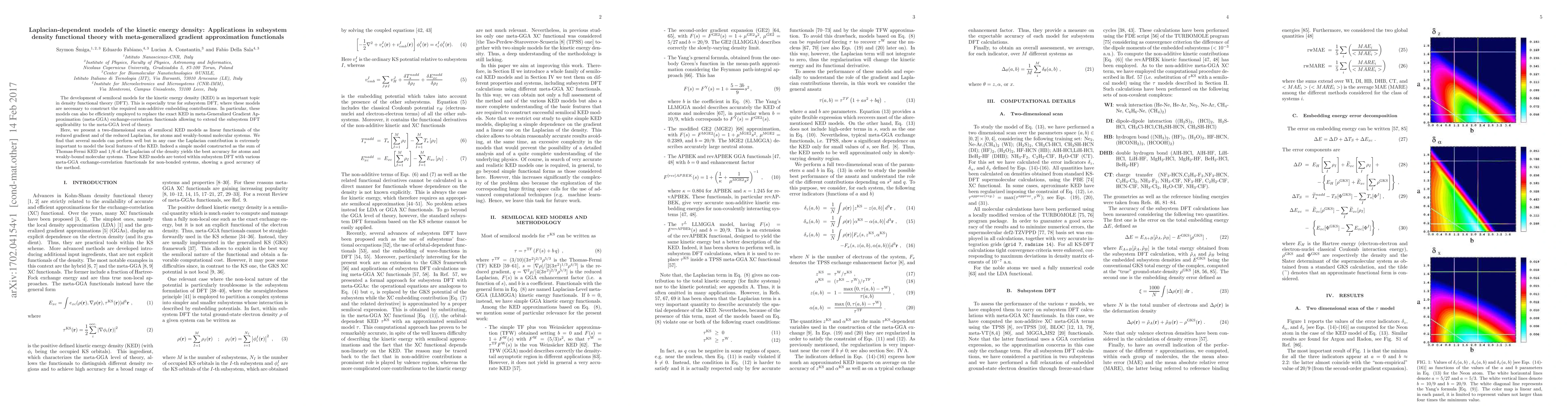 The development of semilocal models for the kinetic energy density (KED) is an important topic in density functional theory (DFT). This is especially true for subsystem DFT, where these models are necessary to construct the required non-additive embedding contributions. In particular, these models can also be efficiently employed to replace the exact KED in meta-Generalized Gradient Approximation (meta-GGA) exchange-correlation functionals allowing to extend the subsystem DFT applicability to the meta-GGA level of theory. Here, we present a two-dimensional scan of semilocal KED models as linear functionals of the reduced gradient and of the reduced Laplacian, for atoms and weakly-bound molecular systems. We find that several models can perform well but in any case the Laplacian contribution is extremely important to model the local features of the KED. Indeed a simple model constructed as the sum of Thomas-Fermi KED and 1/6 of the Laplacian of the density yields the best accuracy for atoms and weakly-bound molecular systems. These KED models are tested within subsystem DFT with various meta-GGA exchange-correlation functionals for non-bonded systems, showing a good accuracy of the method.