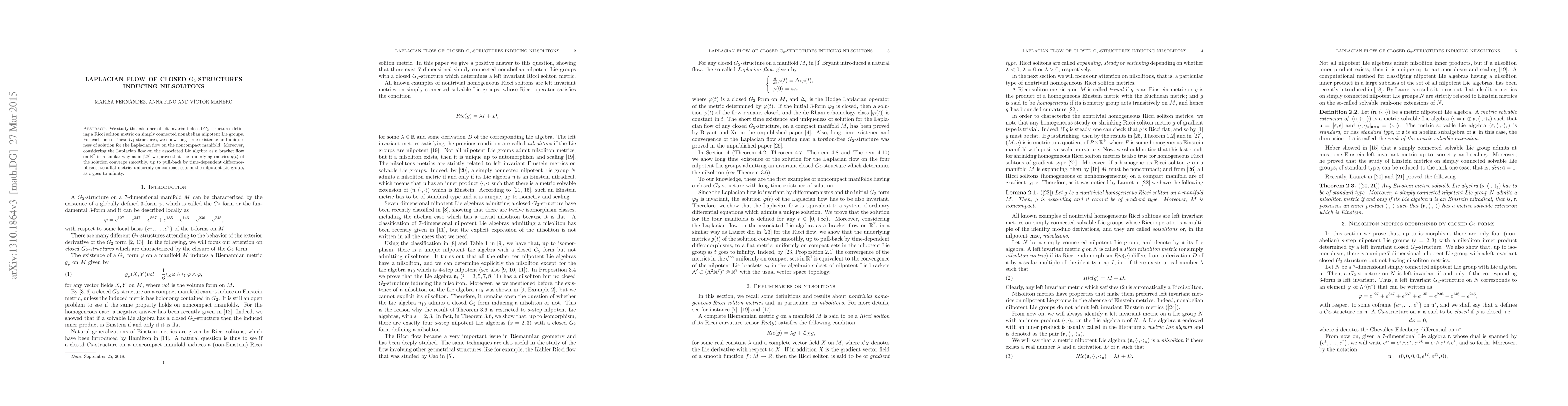 The paper studies whether closed G2-structures can induce nilsolitons on simply connected nonabelian nilpotent Lie groups, finding long-time existence and uniqueness of Laplacian flow solutions that converge to a flat metric.
