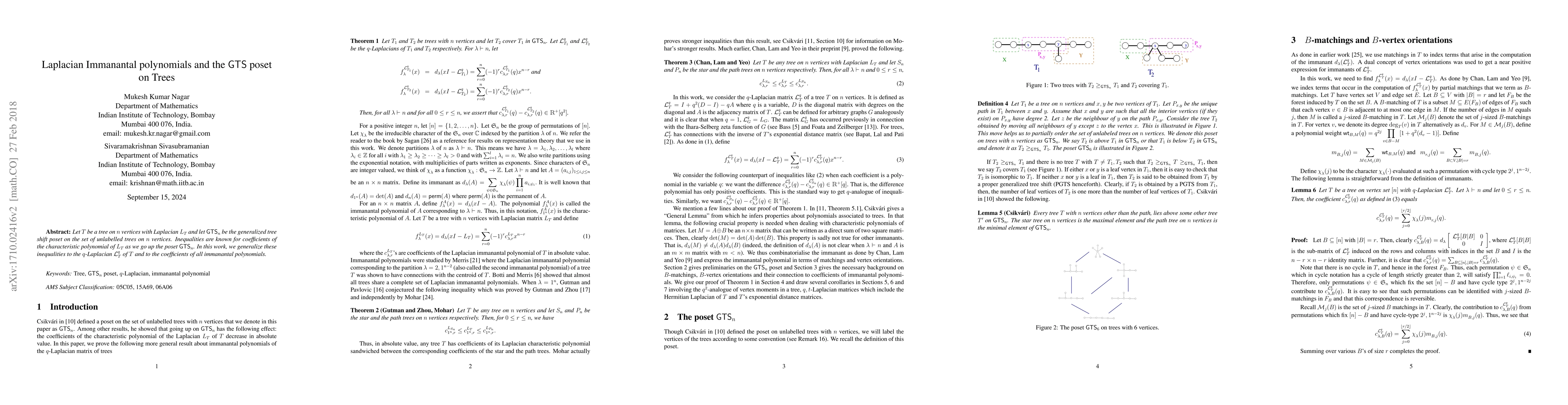 Let $T$ be a tree on $n$ vertices with Laplacian $L_T$ and let $GTS_n$ be the generalized tree shift poset on the set of unlabelled trees on $n$ vertices. Inequalities are known for coefficients of the characteristic polynomial of $L_T$ as we go up the poset $GTS_n$. In this work, we generalize these inequalities to the $q$-Laplacian $L^q_T$ of $T$ and to the coefficients of all immanantal polynomials.