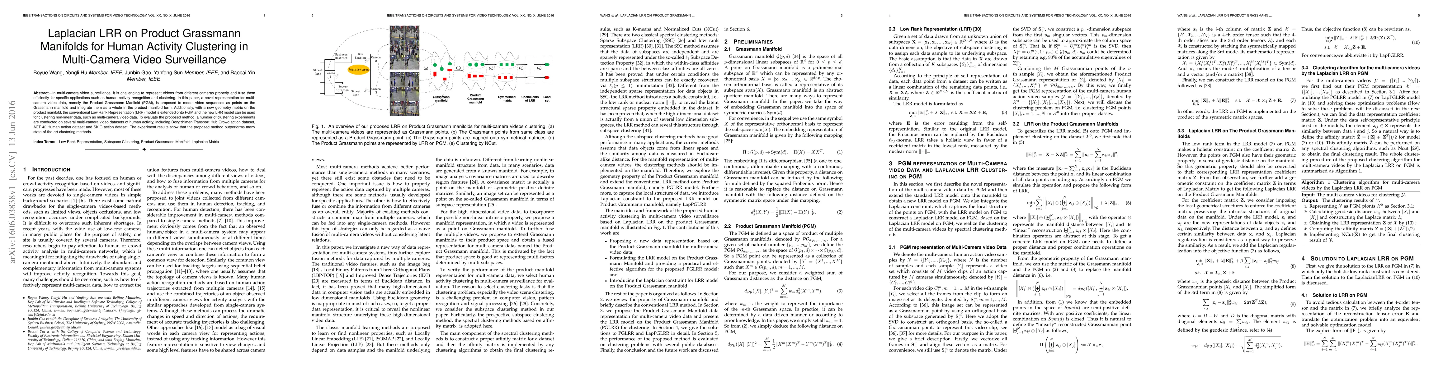 A new method for clustering multi-camera video data is proposed using the Product Grassmann Manifold, outperforming state-of-the-art methods in human activity recognition and clustering.