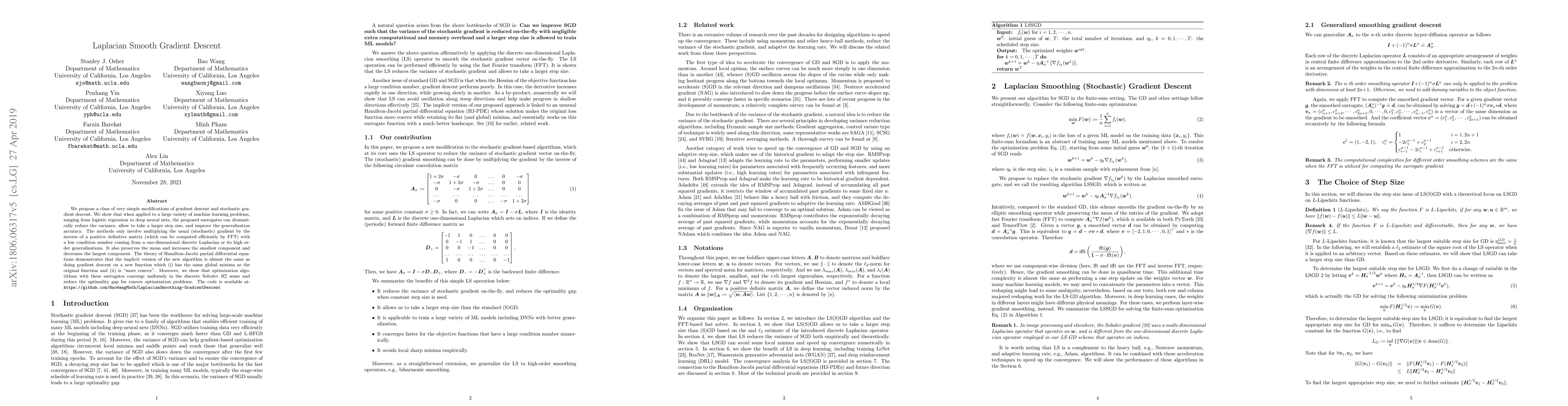 This paper proposes a simple modification of gradient descent that uses Laplacian smoothing to reduce variance and improve generalization accuracy. The method involves multiplying the gradient by the inverse of a Laplacian matrix, which enhances the optimization process and maintains the mean of the gradient.