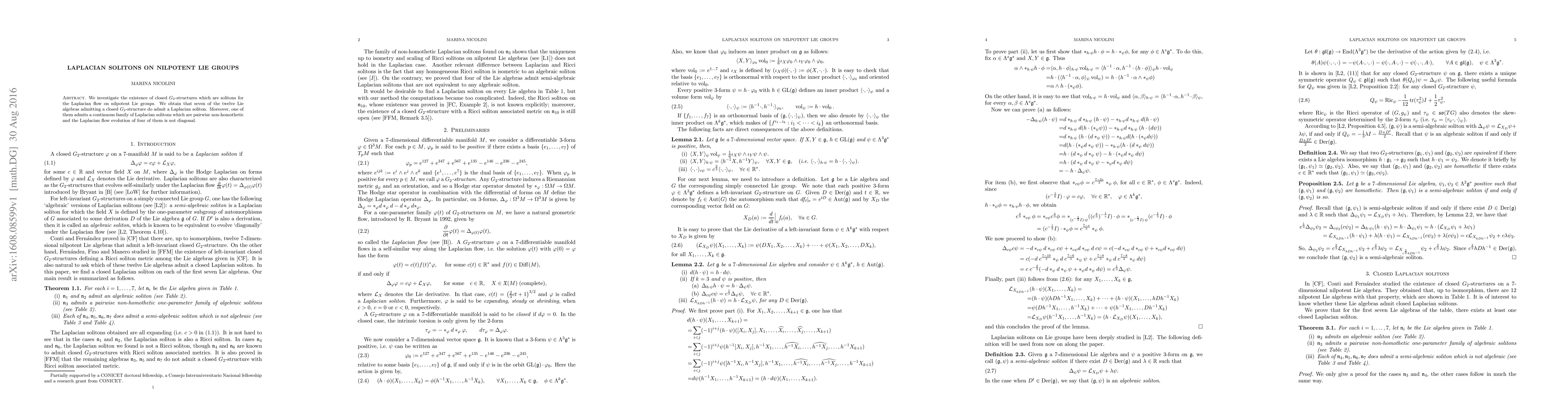 This paper explores the existence of Laplacian solitons for closed $G_2$-structures on nilpotent Lie groups, finding that seven out of twelve such Lie algebras support these solitons, with one algebra hosting a continuous family of non-homothetic solitons whose Laplacian flow evolutions are not diagonal.