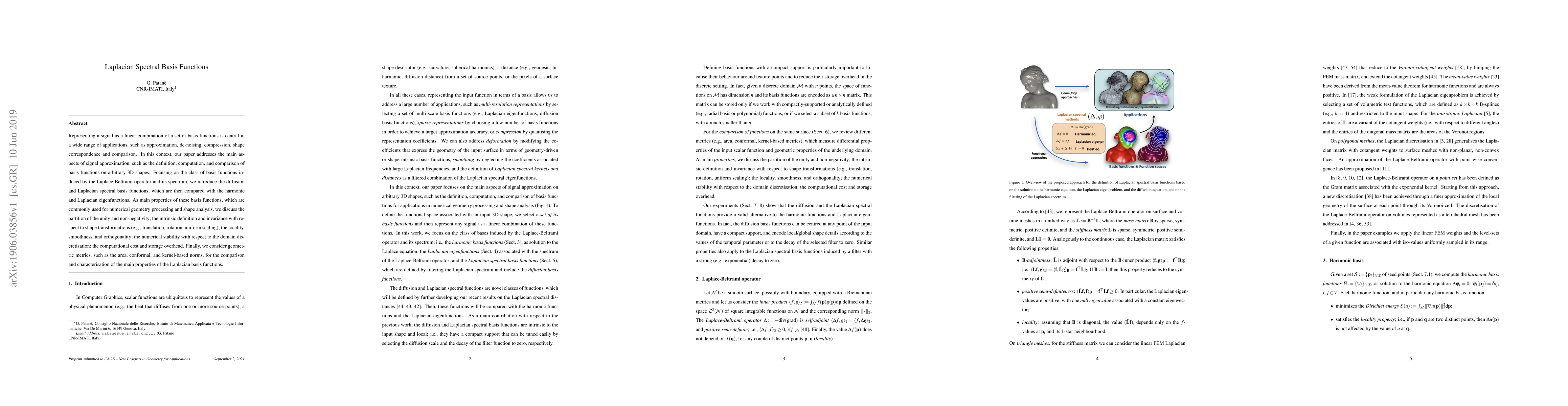 This paper explores Laplacian spectral basis functions for signal approximation on 3D shapes, comparing them with harmonic and Laplacian eigenfunctions. It discusses properties like partition of unity, locality, and computational stability, and uses geometric metrics for characterization.