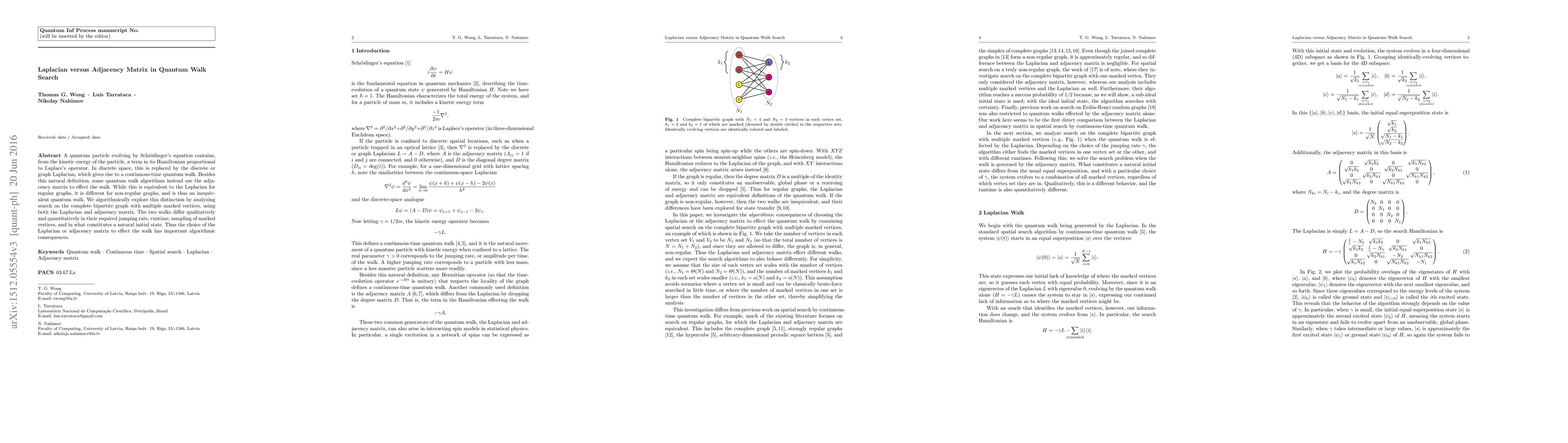 The choice between Laplacian and adjacency matrix affects the performance of quantum walk algorithms, with important implications for algorithmic consequences.