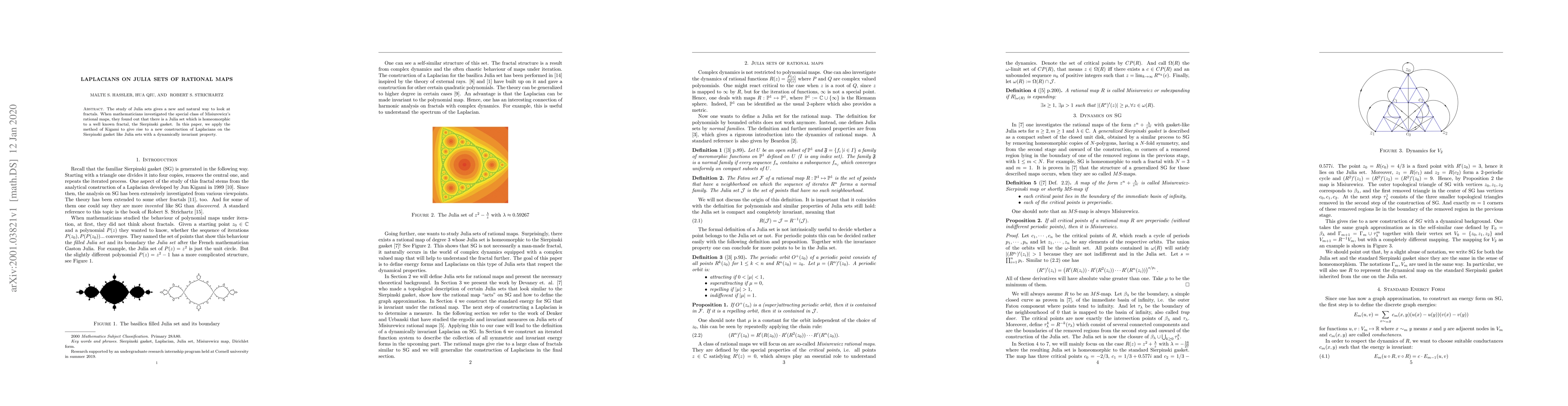 This paper explores the construction of Laplacians on Julia sets derived from Misiurewicz's rational maps, revealing a fractal homeomorphic to the Sierpinski gasket, and utilizes the Kigami method to establish dynamically invariant properties.