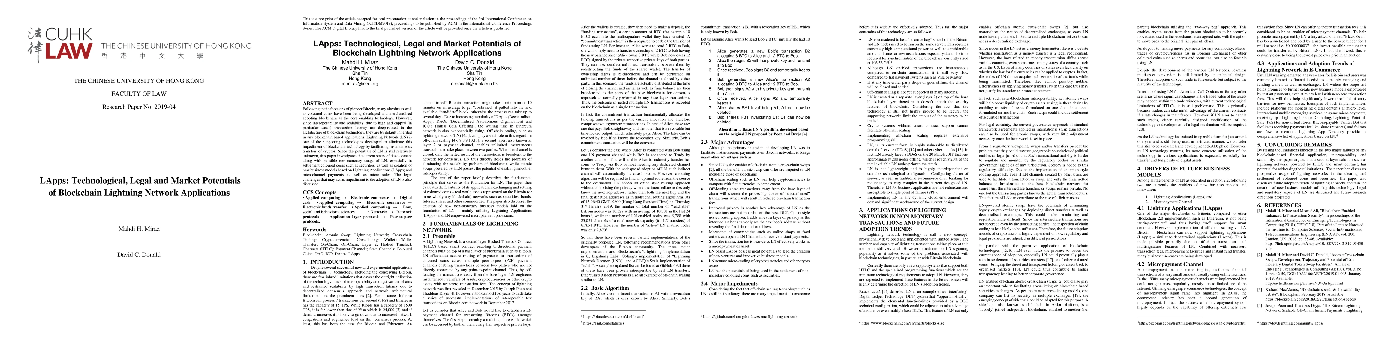This paper explores the Lightning Network's potential to address blockchain's scalability and latency issues, enabling instant crypto transfers. It also examines non-monetary uses of LN, such as settlement of coloured coins like securities, and the creation of new business models through Lightning Applications (LApps) and microchannel payments. Legal challenges hindering LN adoption are discussed.