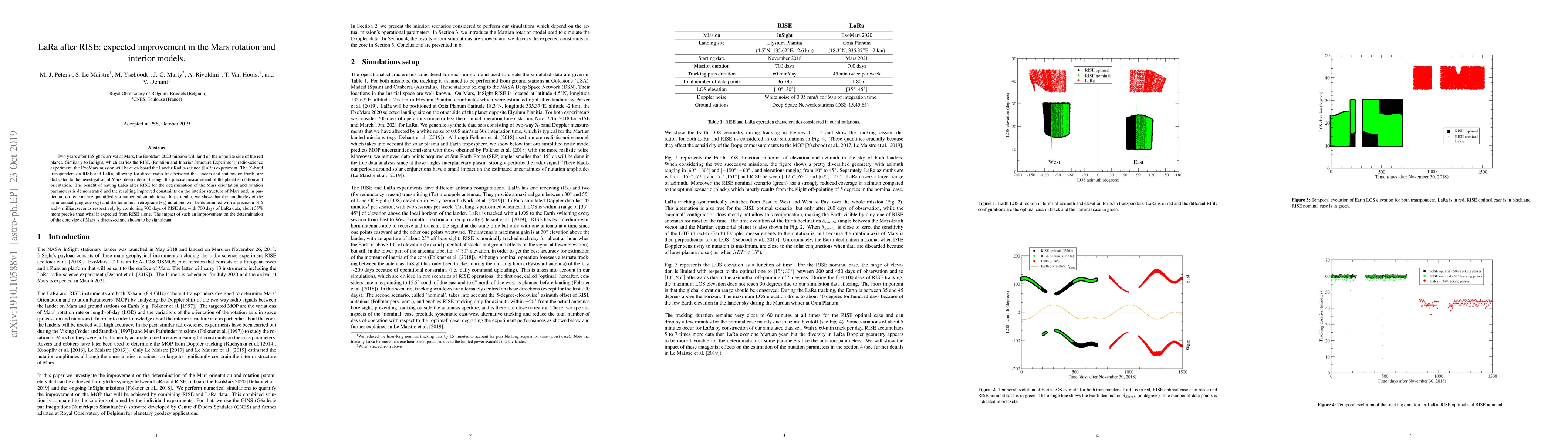 This paper demonstrates that the Lander Radio-science (LaRa) experiment on the ExoMars 2020 mission will significantly improve models of Mars' rotation and interior structure by combining its data with the RISE experiment from InSight. The combined data will enhance the precision of determining Mars' nutations and core size by about 35%.