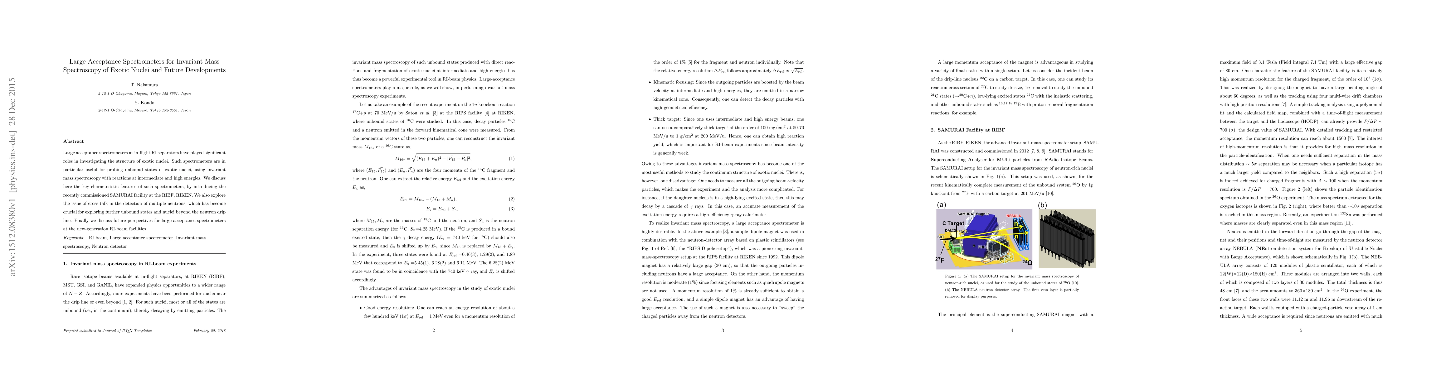 This paper discusses the role of large acceptance spectrometers in studying the structure of exotic nuclei, exemplified by the SAMURAI facility at RIBF, RIKEN. It also addresses the challenge of cross talk in neutron detection and explores future advancements in large acceptance spectrometers for next-generation RI-beam facilities.