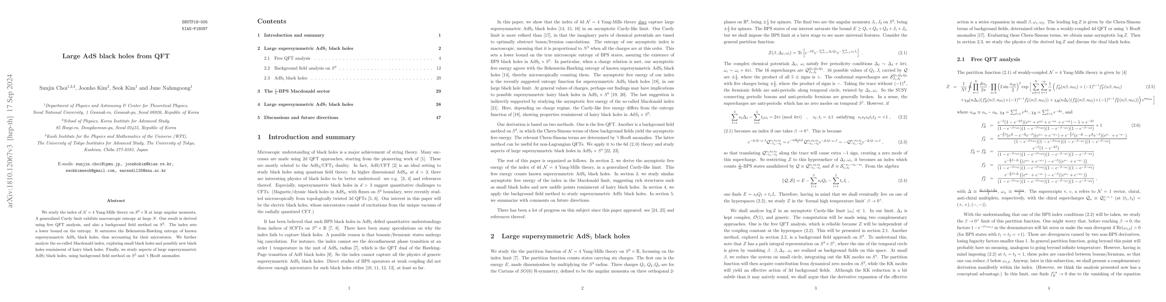 This paper investigates the entropy and microstates of large AdS black holes using $\mathcal{N}=4$ Yang-Mills theory on $S^3\times\mathbb{R}$, deriving results via free QFT analysis and the Bekenstein-Hawking entropy formula, and exploring the implications for supersymmetric black holes in higher dimensions.