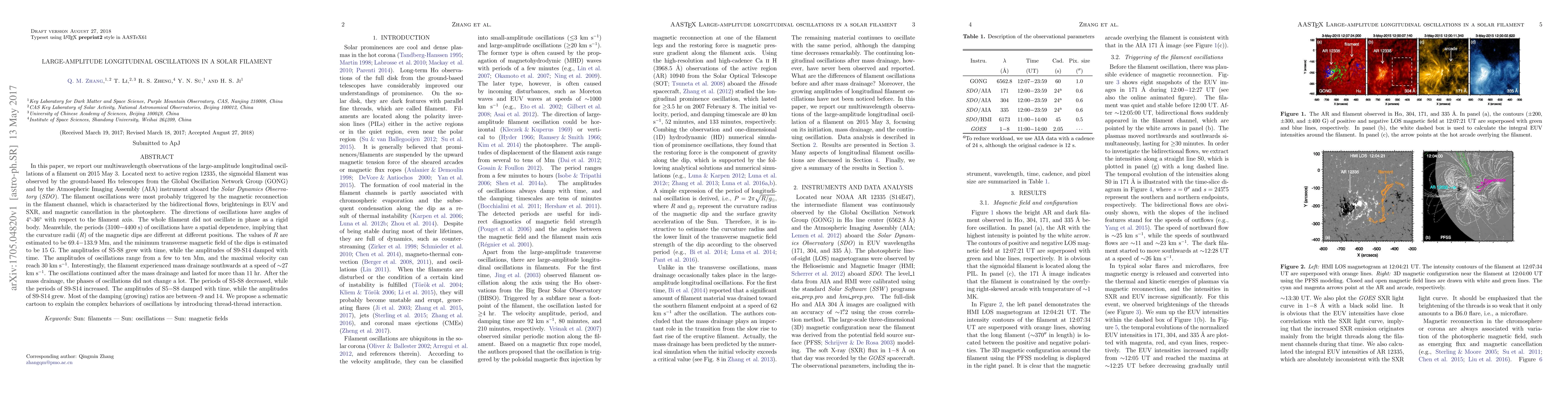This paper reports large-amplitude longitudinal oscillations in a solar filament observed via multiwavelength techniques, likely triggered by magnetic reconnection. The filament's oscillations varied in phase and period, with amplitudes ranging from a few to ten Mm and velocities up to 30 km s$^{-1}$.