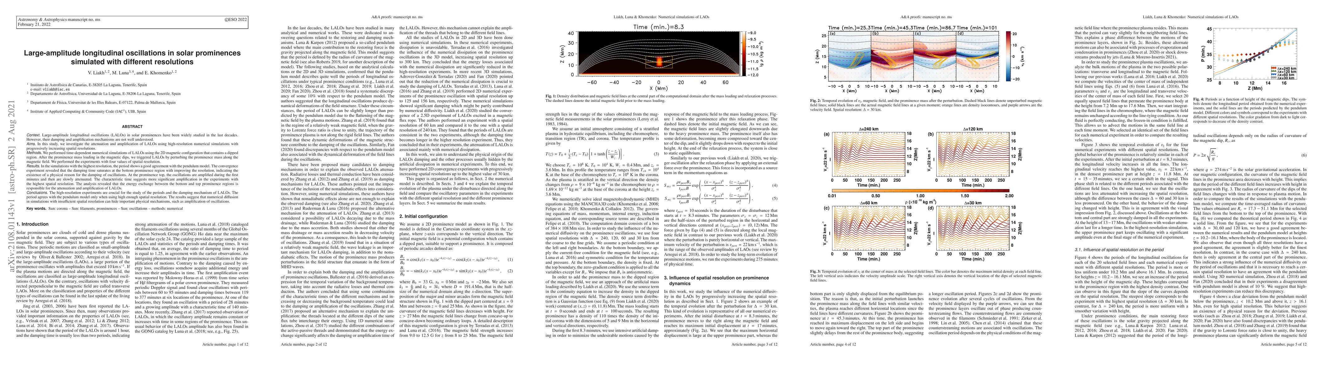 This study investigates large-amplitude longitudinal oscillations (LALOs) in solar prominences using high-resolution numerical simulations. The results show that high spatial resolution is crucial for accurately modeling the period and damping mechanisms of LALOs, with energy exchange between prominence regions responsible for their attenuation and amplification.