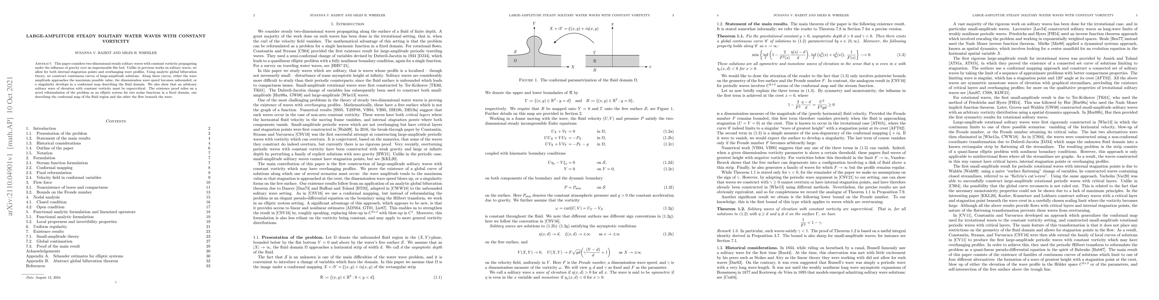 The paper presents a novel reformulation of the problem as an elliptic system for two scalar functions in a fixed domain, facilitating the construction of large-amplitude solution curves.