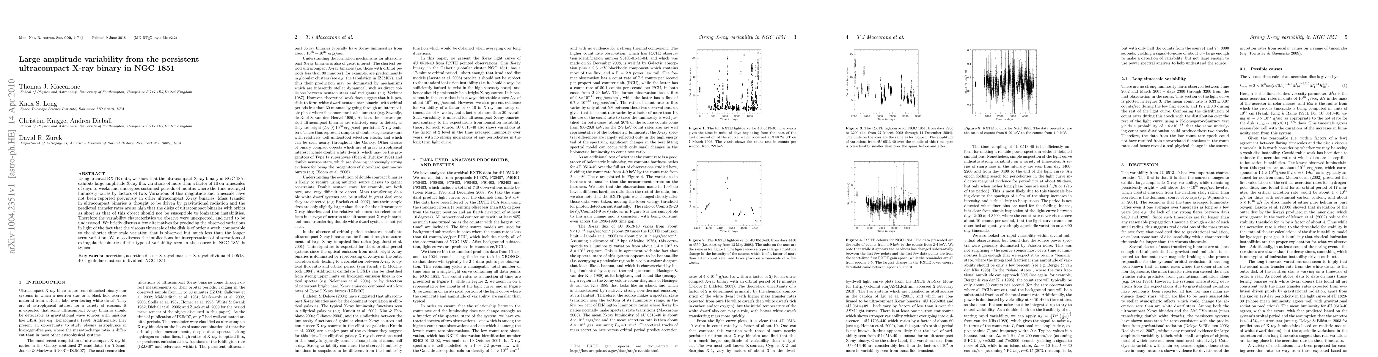 This research reveals unexpected large X-ray flux variations in the ultracompact binary of NGC 1851, exceeding a factor of 10 over days to weeks. These variations challenge existing theories on mass transfer in such systems, prompting the exploration of alternative explanations and implications for observing extragalactic binaries.