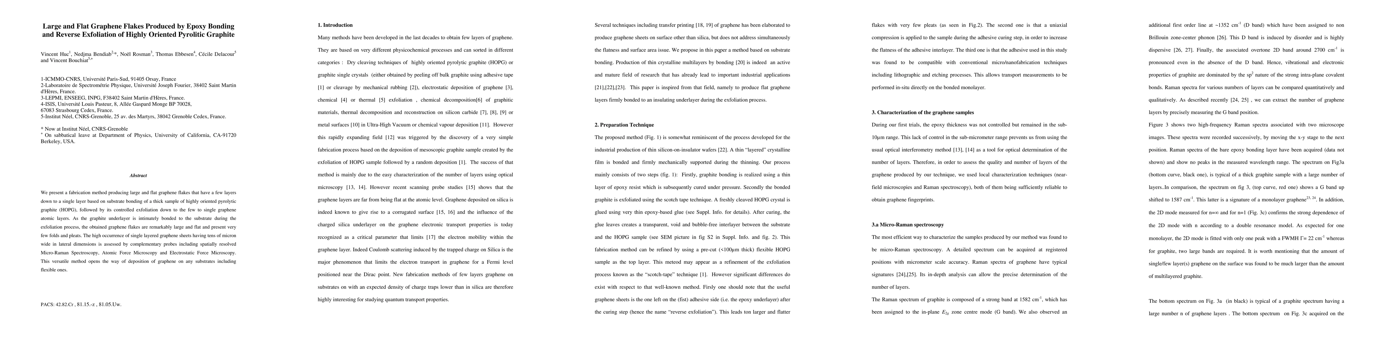 This paper presents a method for producing large and flat graphene flakes by bonding and exfoliating highly oriented pyrolytic graphite, resulting in few-layer or single-layer graphene with minimal folds. The method's effectiveness is validated using Micro-Raman Spectroscopy, Atomic Force Microscopy, and Electrostatic Force Microscopy.