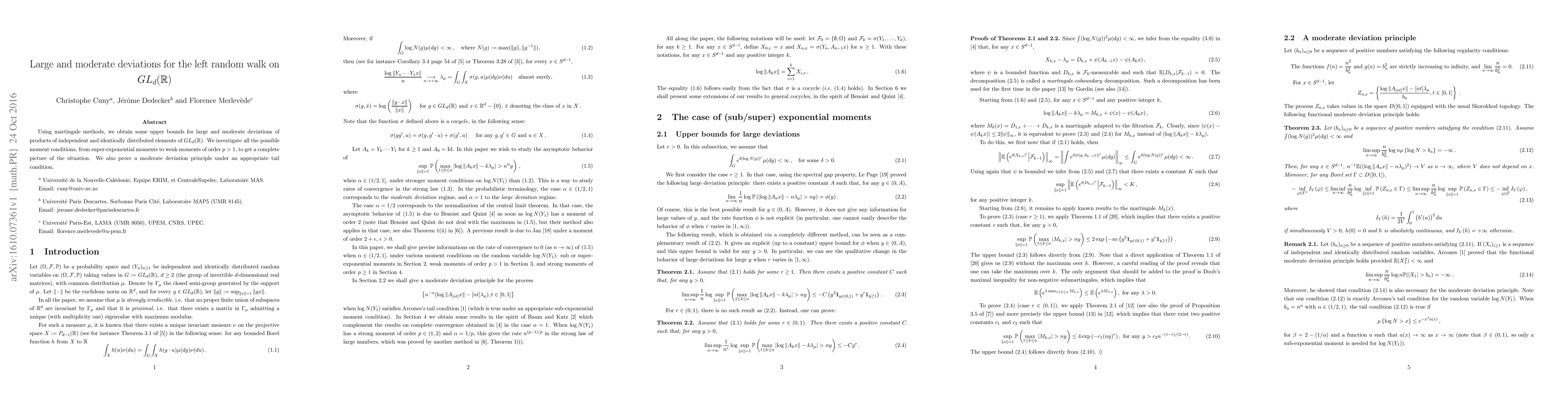 This paper uses martingale methods to establish upper bounds for large and moderate deviations of products from a left random walk on general linear groups (GL d(R)), covering various moment conditions including super-exponential and weak moments.
