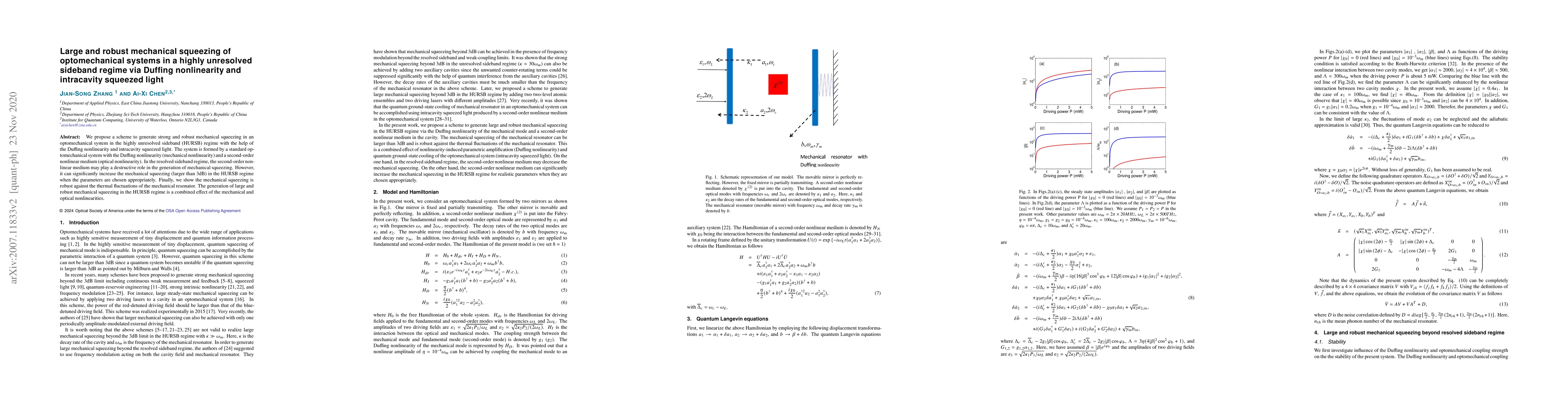 This paper proposes a method to achieve significant mechanical squeezing in an optomechanical system using Duffing nonlinearity and intracavity squeezed light in the highly unresolved sideband regime. The system combines mechanical and optical nonlinearities to generate robust mechanical squeezing greater than 3dB, which remains effective against thermal fluctuations.