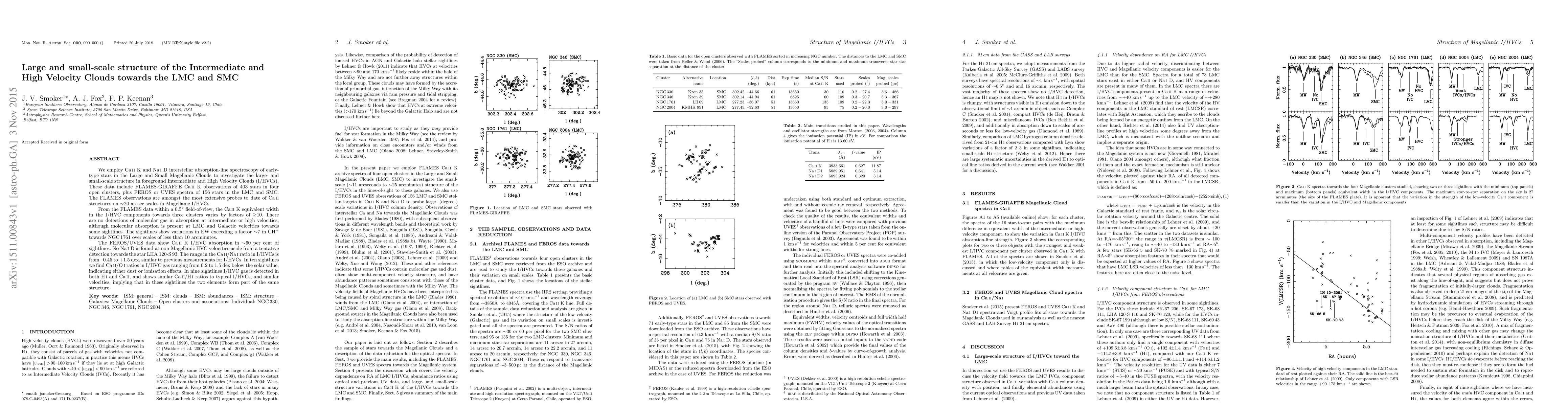 Researchers used spectroscopy to study large-scale structure in clouds near the Large and Small Magellanic Clouds, finding variations of up to 10 times in absorption line strengths and no molecular gas at high velocities.