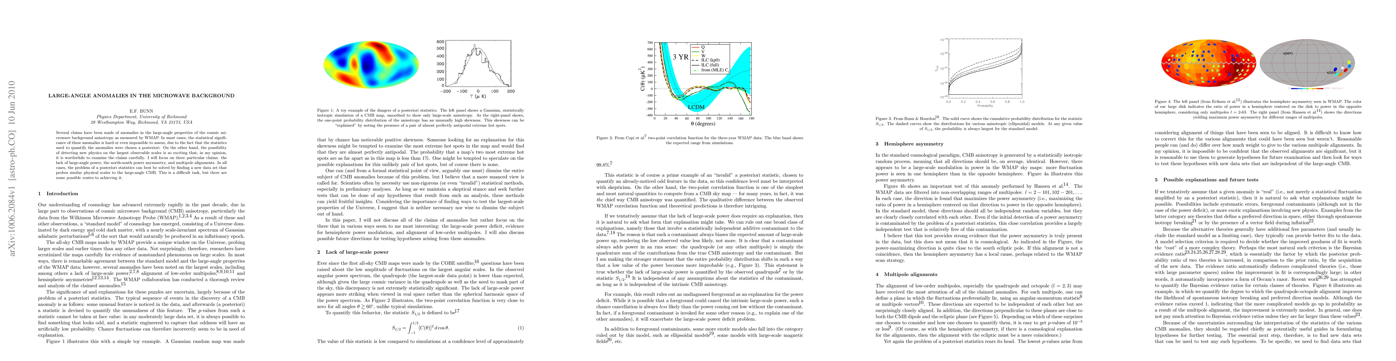 This paper examines claims of anomalies in the large-angle properties of the cosmic microwave background (CMB) as measured by WMAP, focusing on the lack of large-angle power, north-south power asymmetry, and multipole alignments. It argues that the statistical significance of these anomalies is often questionable due to a posteriori statistics, but suggests that new data sets probing similar physical scales could help resolve these issues.