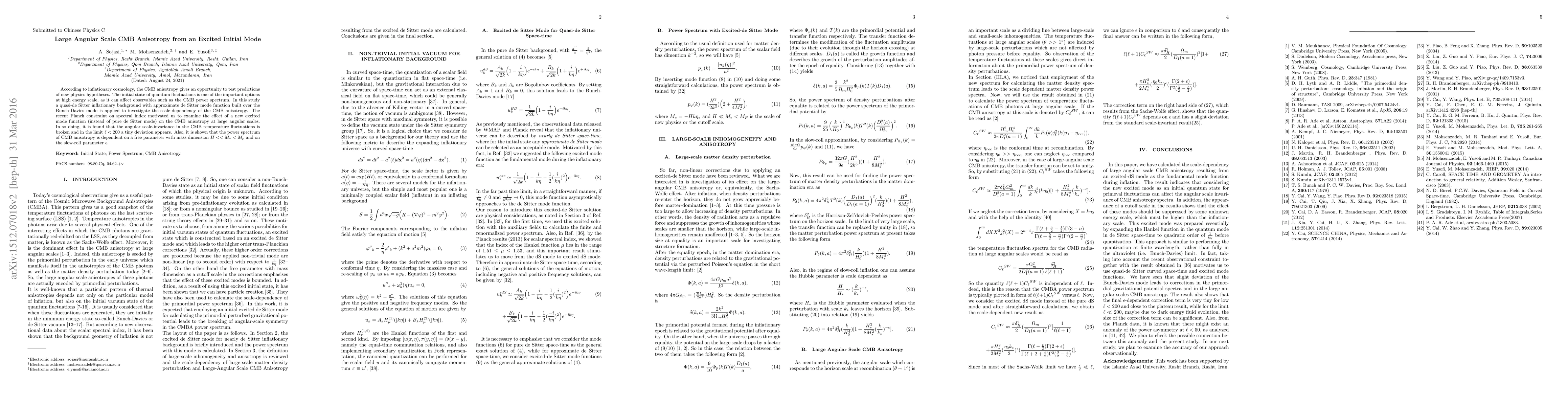 This paper investigates how an excited initial mode in a quasi-de Sitter inflationary background affects CMB anisotropy at large angular scales, revealing a tiny deviation from scale-invariance for $\ell<200$ and showing that the CMB power spectrum depends on a new free parameter and the slow-roll parameter $\epsilon$.