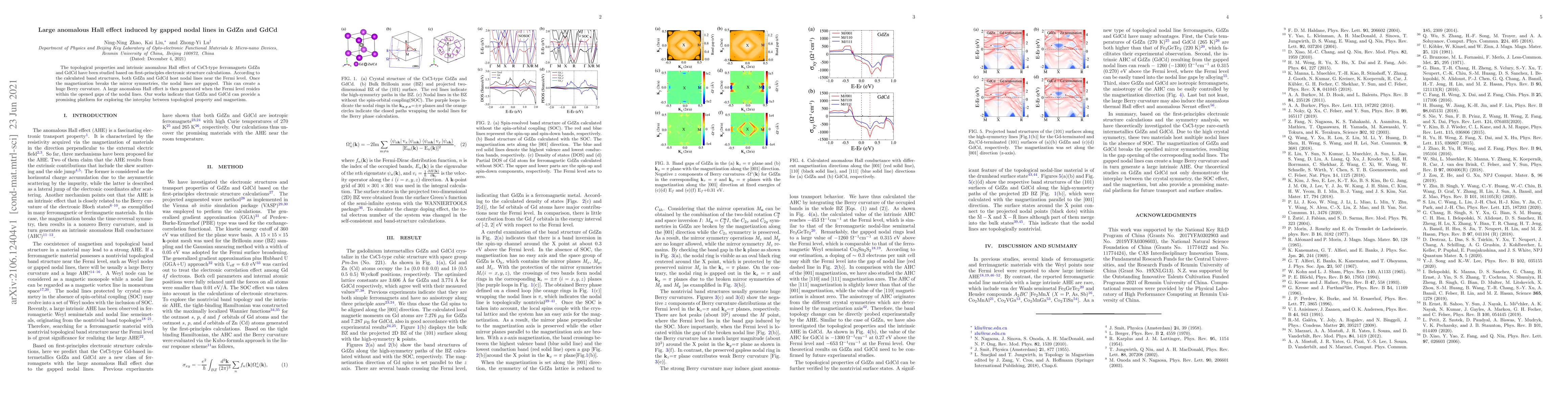 This paper investigates the topological properties and anomalous Hall effect in CsCl-type ferromagnets GdZn and GdCd, revealing that both materials host gapped nodal lines near the Fermi level. The study suggests that these materials could exhibit a large anomalous Hall effect due to the significant Berry curvature generated by the gapped nodal lines.