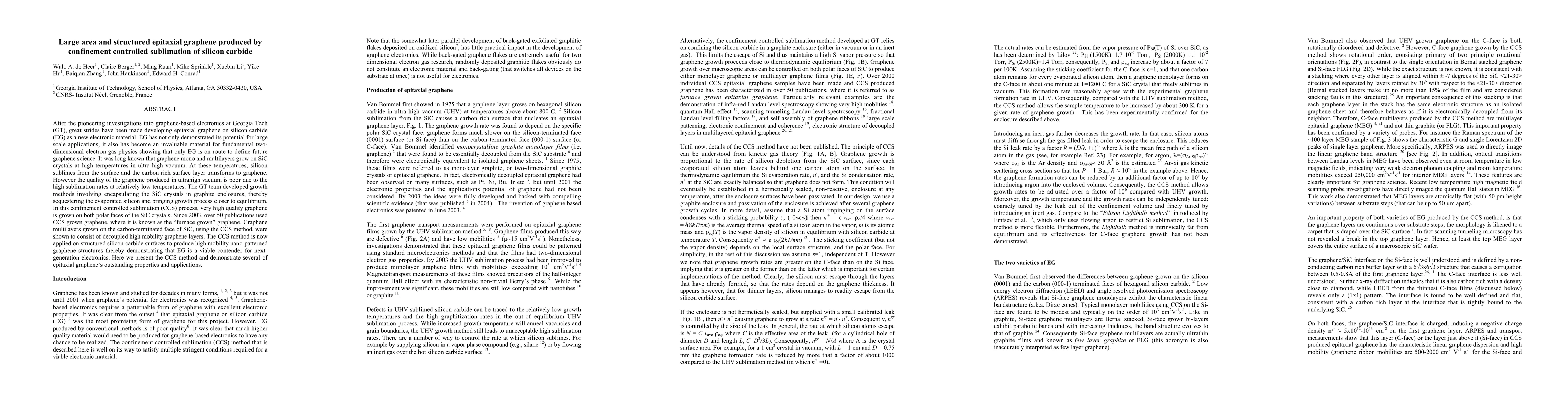 The Georgia Tech team developed a confinement controlled sublimation (CCS) method to produce high-quality, large-area epitaxial graphene on silicon carbide (SiC), demonstrating its potential for next-generation electronic applications. The CCS process, which encases SiC in graphite to control silicon sublimation, results in graphene layers with high mobility and structural patterns.