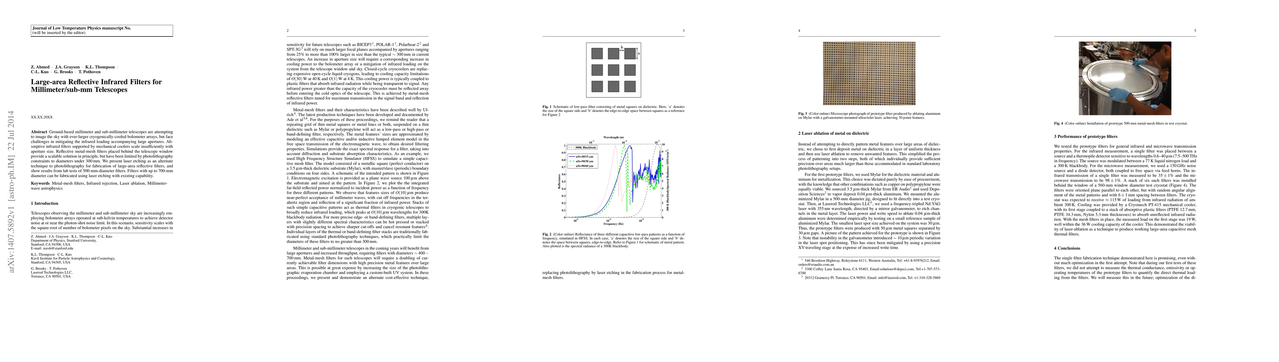 This paper proposes laser etching as a method to fabricate large-area reflective infrared filters for millimeter/sub-mm telescopes, addressing the limitations of photolithography. Lab tests demonstrate successful production of 500 mm-diameter filters, with potential for scaling up to 700 mm.