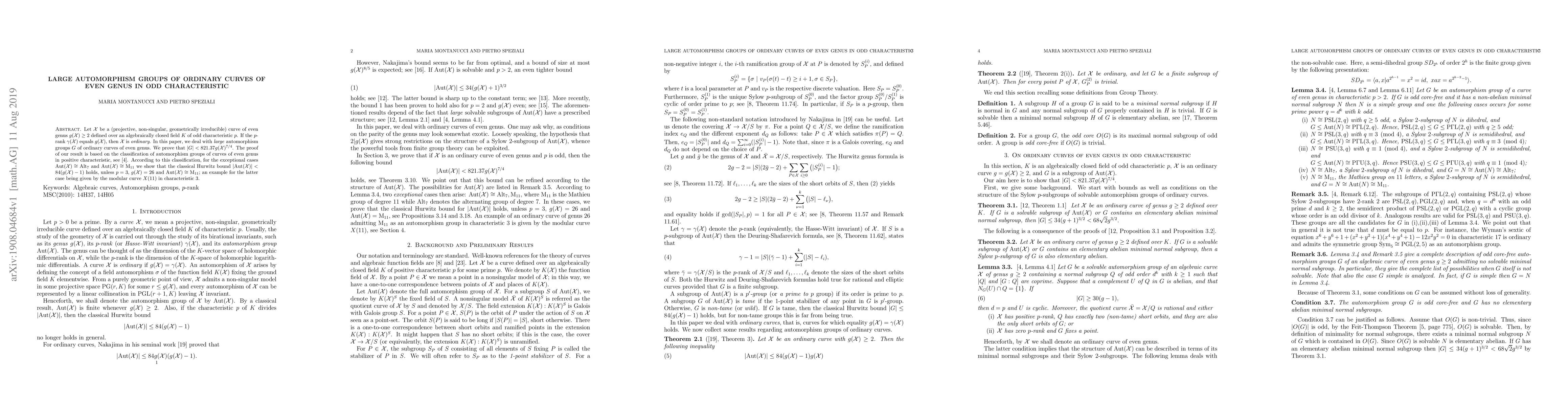 This paper investigates large automorphism groups of ordinary curves of even genus defined over fields of odd characteristic. It proves that the size of such groups is bounded by $|G| < 821.37g(\mathcal{X})^{7/4}$, using classification results from a referenced work. The classical Hurwitz bound is also shown to hold for exceptional automorphism groups, except in specific cases involving $p=3$, $g(\mathcal{X})=26$, and ${\rm Aut}(\mathcal{X}) \cong \rm{M}_{11}$.