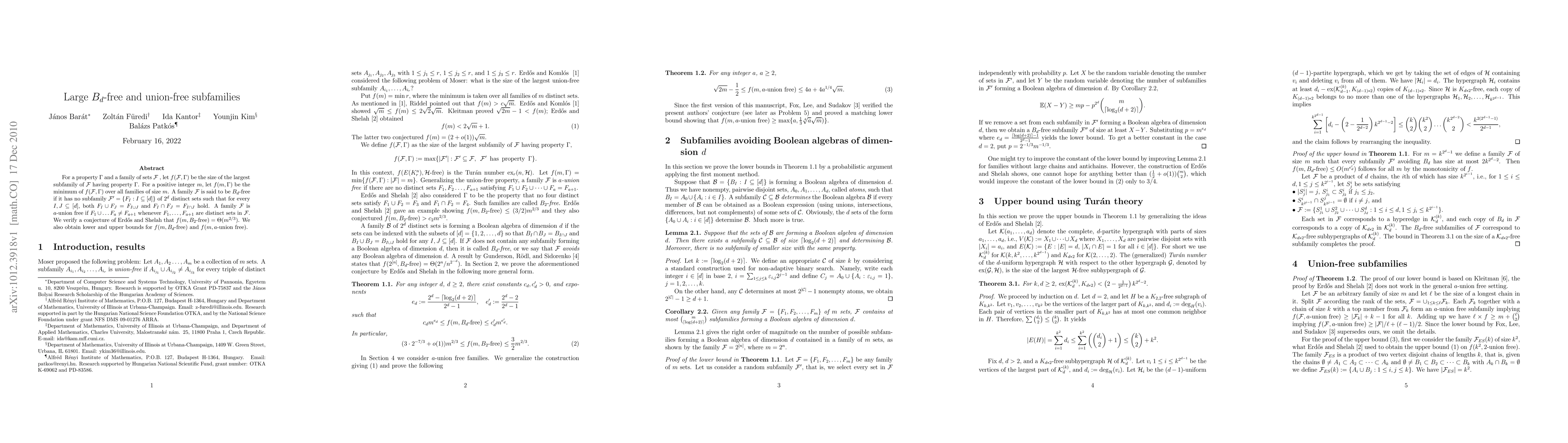 For a property $\Gamma$ and a family of sets $\cF$, let $f(\cF,\Gamma)$ be the size of the largest subfamily of $\cF$ having property $\Gamma$. For a positive integer $m$, let $f(m,\Gamma)$ be the minimum of $f(\cF,\Gamma)$ over all families of size $m$. A family $\cF$ is said to be $B_d$-free if it has no subfamily $\cF'=\{F_I: I \subseteq [d]\}$ of $2^d$ distinct sets such that for every $I,J \subseteq [d]$, both $F_I \cup F_J=F_{I \cup J}$ and $F_I \cap F_J = F_{I \cap J}$ hold. A family $\cF$ is $a$-union free if $F_1\cup ... F_a \neq F_{a+1}$ whenever $F_1,..,F_{a+1}$ are distinct sets in $\FF$. We verify a conjecture of Erd\H os and Shelah that $f(m, B_2\text{\rm -free})=\Theta(m^{2/3})$. We also obtain lower and upper bounds for $f(m, B_d\text{\rm -free})$ and $f(m,a\text{\rm -union free})$.