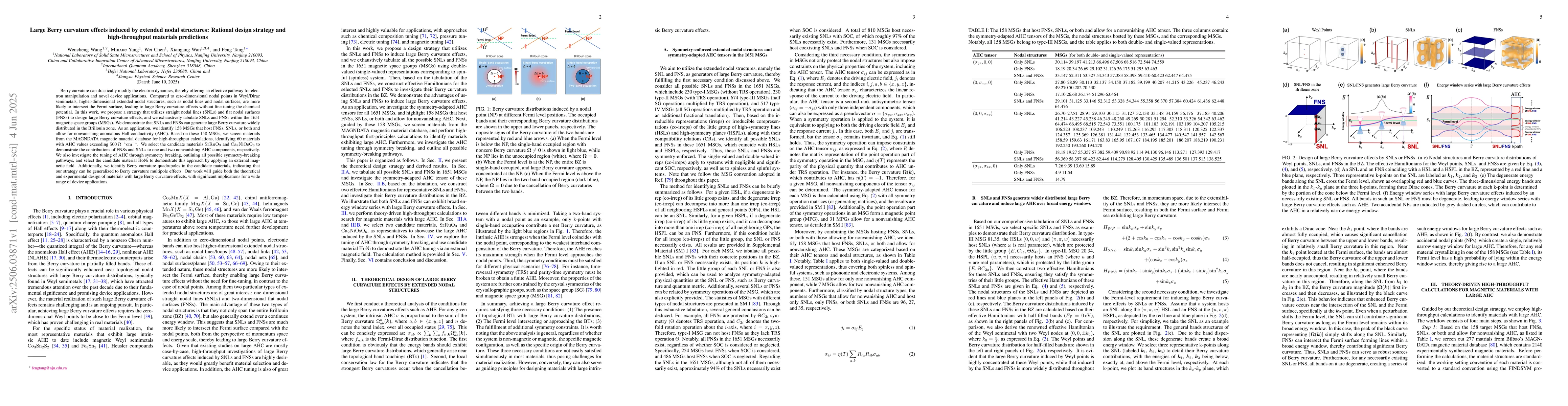 The rational design strategy and high-throughput materials predictions for large Berry curvature effects induced by extended nodal structures.