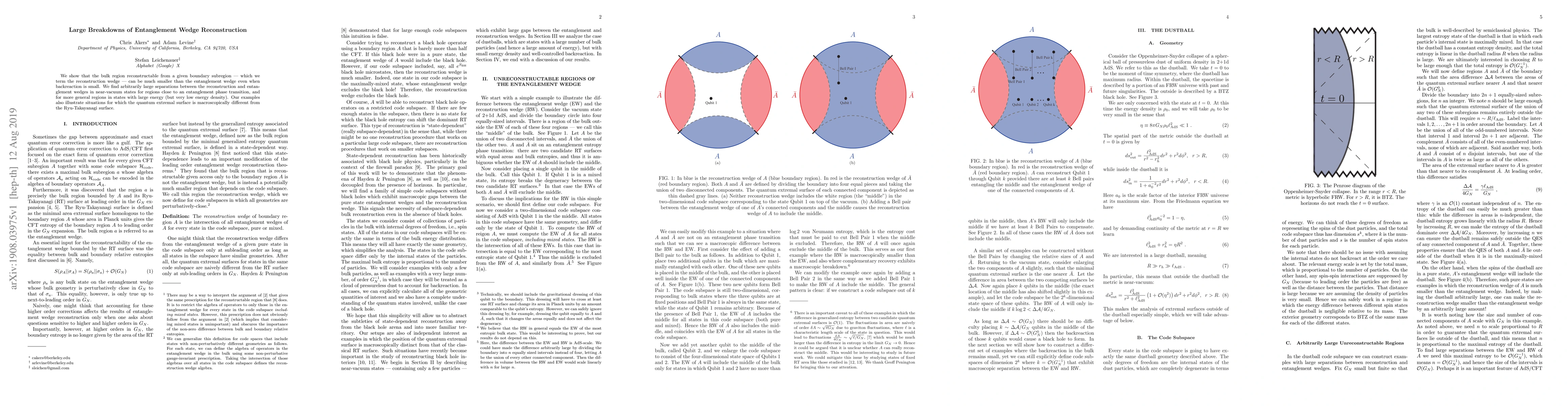 This paper demonstrates that the bulk region reconstructable from a boundary subregion (reconstruction wedge) can be significantly smaller than the entanglement wedge, even with minimal backreaction. It highlights large separations between these regions in near-vacuum states near entanglement phase transitions and in high-energy states with low energy density.