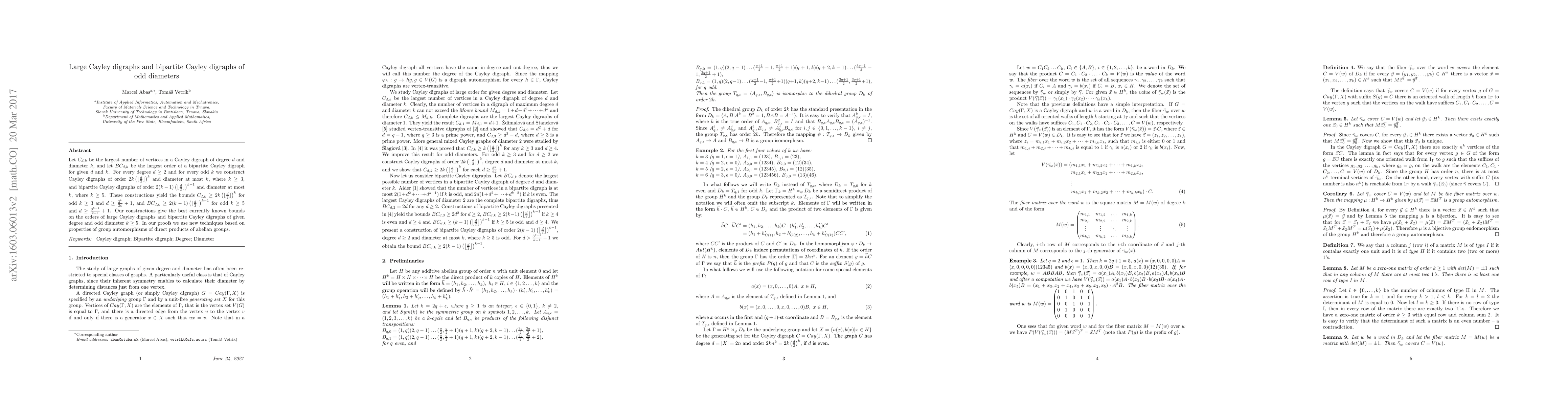 Let $C_{d,k}$ be the largest number of vertices in a Cayley digraph of degree $d$ and diameter $k$, and let $BC_{d,k}$ be the largest order of a bipartite Cayley digraph for given $d$ and $k$. For every degree $d\geq2$ and for every odd $k$ we construct Cayley digraphs of order $2k\left(\lfloor\frac{d}{2}\rfloor\right)^k$ and diameter at most $k$, where $k\ge 3$, and bipartite Cayley digraphs of order $2(k-1)\left(\lfloor\frac{d}{2}\rfloor\right)^{k-1}$ and diameter at most $k$, where $k\ge 5$. These constructions yield the bounds $C_{d,k} \ge 2k\left(\lfloor\frac{d}{2}\rfloor\right)^k$ for odd $k\ge 3$ and $d\ge \frac{3^{k}}{2k}+1$, and $BC_{d,k} \ge 2(k-1)\left(\lfloor\frac{d}{2}\rfloor\right)^{k-1}$ for odd $k\ge 5$ and $d\ge \frac{3^{k-1}}{k-1}+1$. Our constructions give the best currently known bounds on the orders of large Cayley digraphs and bipartite Cayley digraphs of given degree and odd diameter $k\ge 5$. In our proofs we use new techniques based on properties of group automorphisms of direct products of abelian groups.