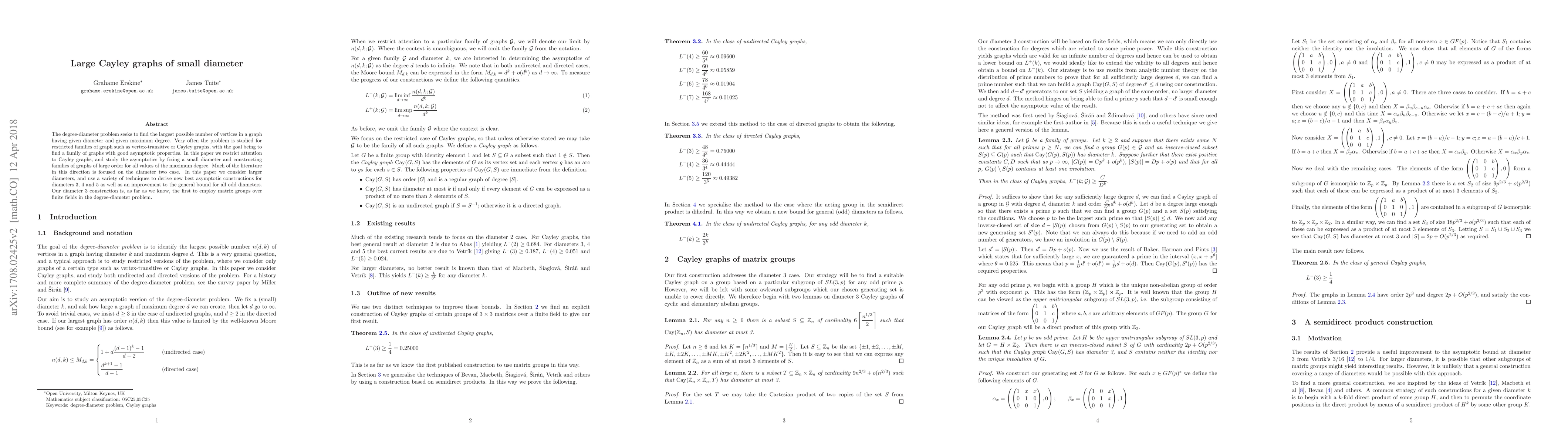 This paper investigates the degree-diameter problem for Cayley graphs, focusing on constructing large-order Cayley graphs with small diameters. It presents new best asymptotic constructions for diameters 3, 4, and 5, and improves general bounds for odd diameters, notably using matrix groups over finite fields for the diameter 3 case.