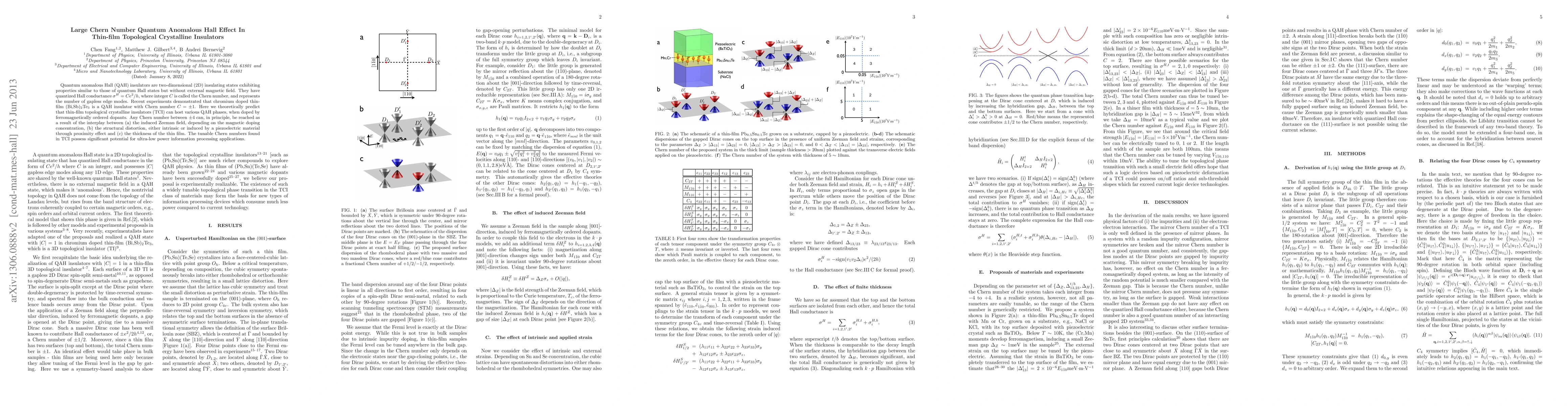 This research theoretically predicts that thin-film topological crystalline insulators can exhibit large Chern number quantum anomalous Hall phases when doped with ferromagnetic materials. The tunable Chern numbers from $\pm4$ have potential for ultra-low power information technology applications.