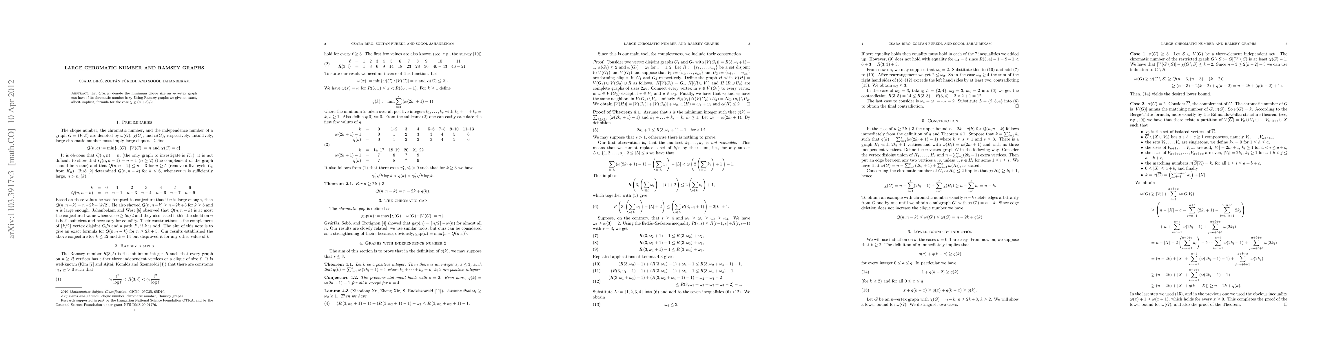This paper presents an exact, albeit implicit, formula for Q(n,c), the minimum clique size in n-vertex graphs with chromatic number c, specifically when c is at least (n+3)/2, leveraging the properties of Ramsey graphs.