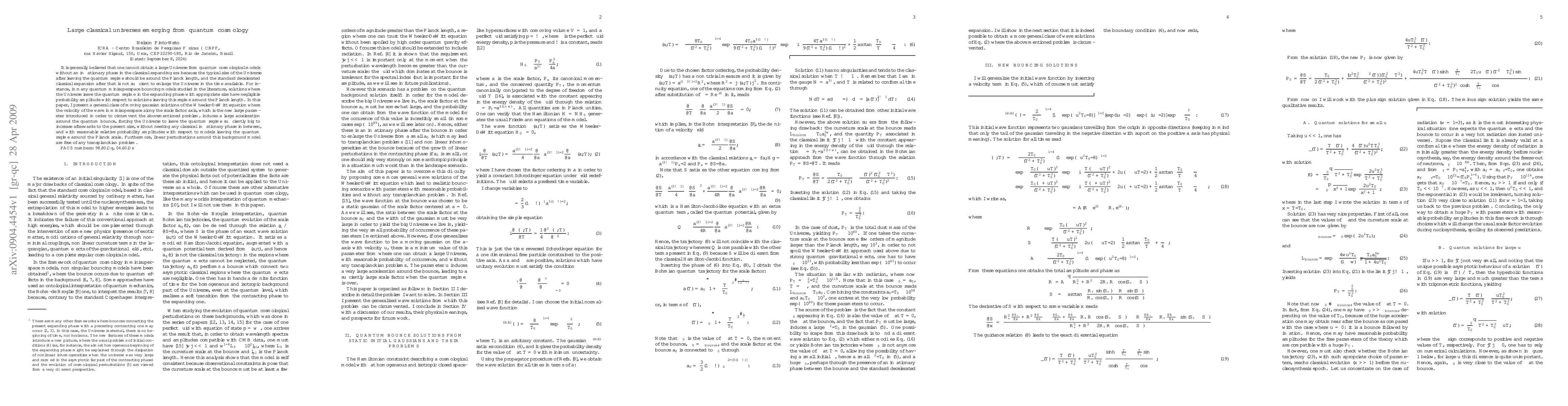 This paper proposes a class of moving Gaussian solutions to the Wheeler-DeWitt equation that allows large classical universes to emerge from quantum cosmology without requiring an inflationary phase. These solutions introduce a large acceleration around the quantum bounce, enabling the universe to grow sufficiently large post-quantum regime, with reasonable probability amplitudes.