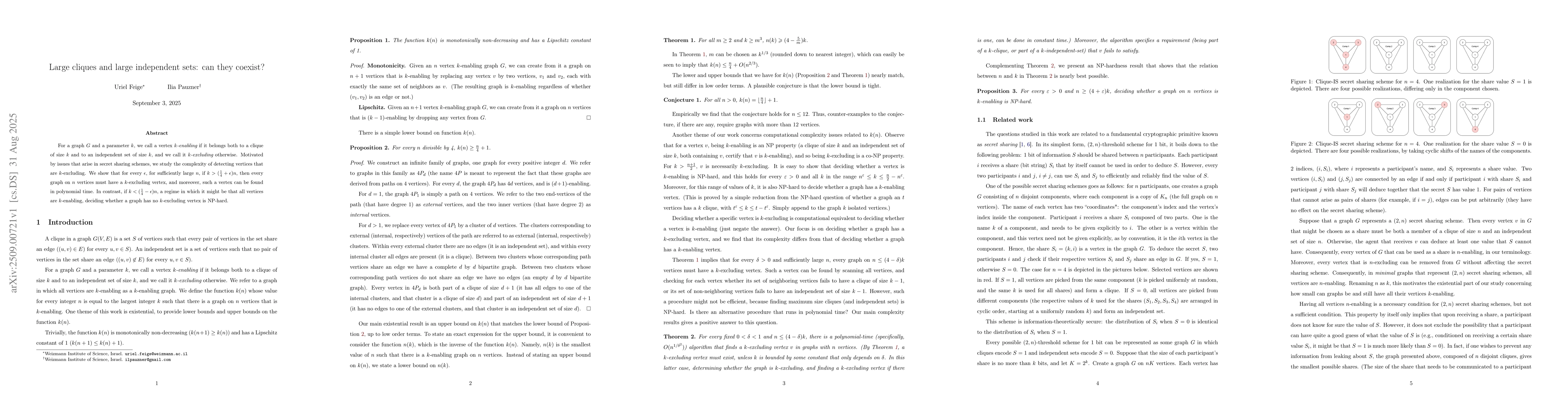 For a graph $G$ and a parameter $k$, we call a vertex $k$-enabling if it belongs both to a clique of size $k$ and to an independent set of size $k$, and we call it $k$-excluding otherwise. Motivated by issues that arise in secret sharing schemes, we study the complexity of detecting vertices that are $k$-excluding. We show that for every $\epsilon$, for sufficiently large $n$, if $k > (\frac{1}{4} + \epsilon)n$, then every graph on $n$ vertices must have a $k$-excluding vertex, and moreover, such a vertex can be found in polynomial time. In contrast, if $k < (\frac{1}{4} - \epsilon)n$, a regime in which it might be that all vertices are $k$-enabling, deciding whether a graph has no $k$-excluding vertex is NP-hard.
