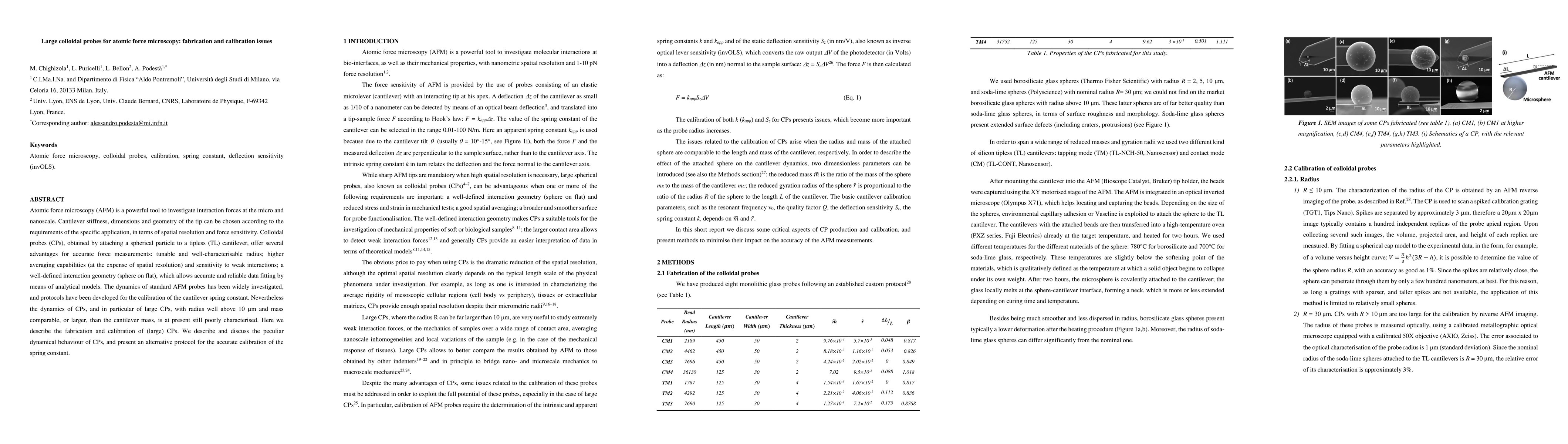 This paper discusses the fabrication and calibration of large colloidal probes for atomic force microscopy, highlighting their unique dynamics compared to standard AFM probes and presenting an improved calibration protocol for their spring constant.