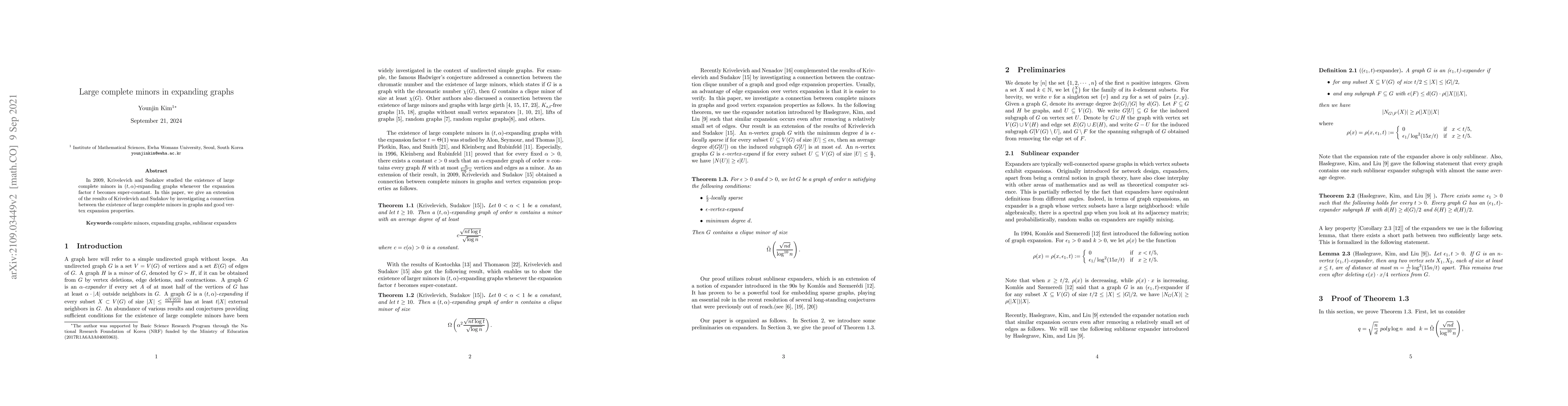 This paper extends the findings of Krivelevich and Sudakov on large complete minors in $(t,\alpha)$-expanding graphs, focusing on the relationship between these minors and strong vertex expansion properties when the expansion factor $t$ is super-constant.