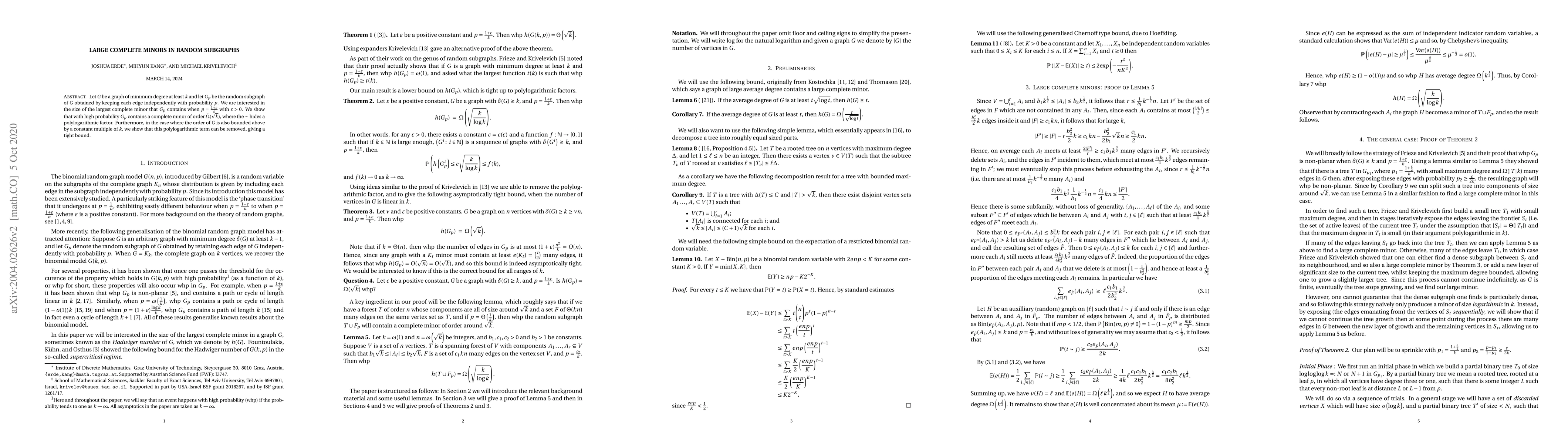 Let $G$ be a graph of minimum degree at least $k$ and let $G_p$ be the random subgraph of $G$ obtained by keeping each edge independently with probability $p$. We are interested in the size of the largest complete minor that $G_p$ contains when $p = \frac{1+\varepsilon}{k}$ with $\varepsilon >0$. We show that with high probability $G_p$ contains a complete minor of order $\tilde{\Omega}(\sqrt{k})$, where the $\sim$ hides a polylogarithmic factor. Furthermore, in the case where the order of $G$ is also bounded above by a constant multiple of $k$, we show that this polylogarithmic term can be removed, giving a tight bound.