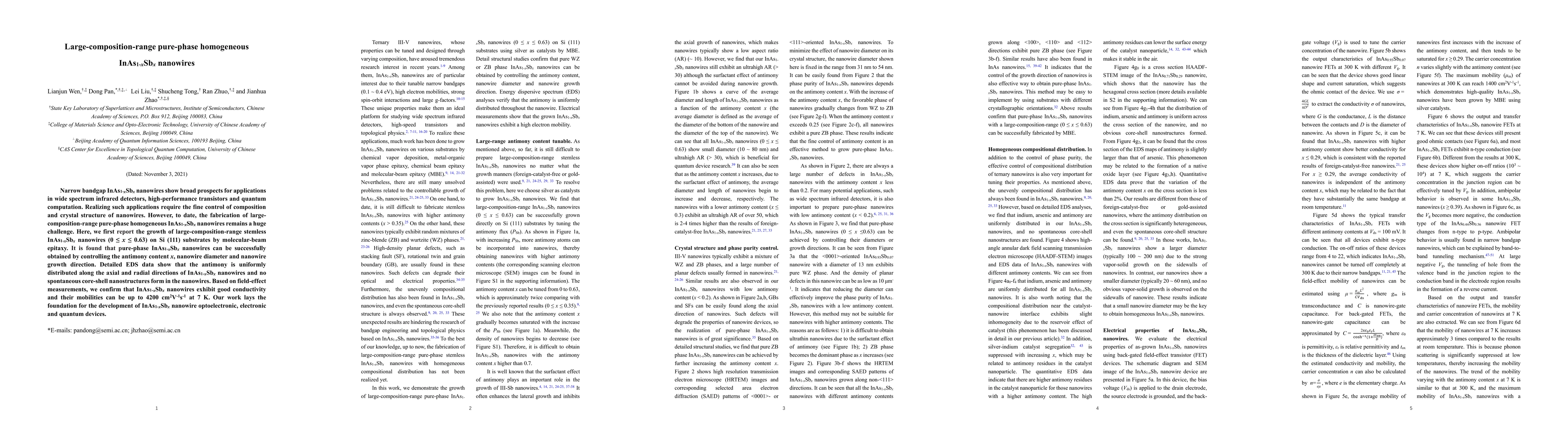 The paper reports the successful growth of large-composition-range pure-phase homogeneous InAs$_{1-x}$Sb$_x$ nanowires using molecular-beam epitaxy, demonstrating uniform antimony distribution and high electron mobility, which is crucial for advanced optoelectronic, electronic, and quantum devices.