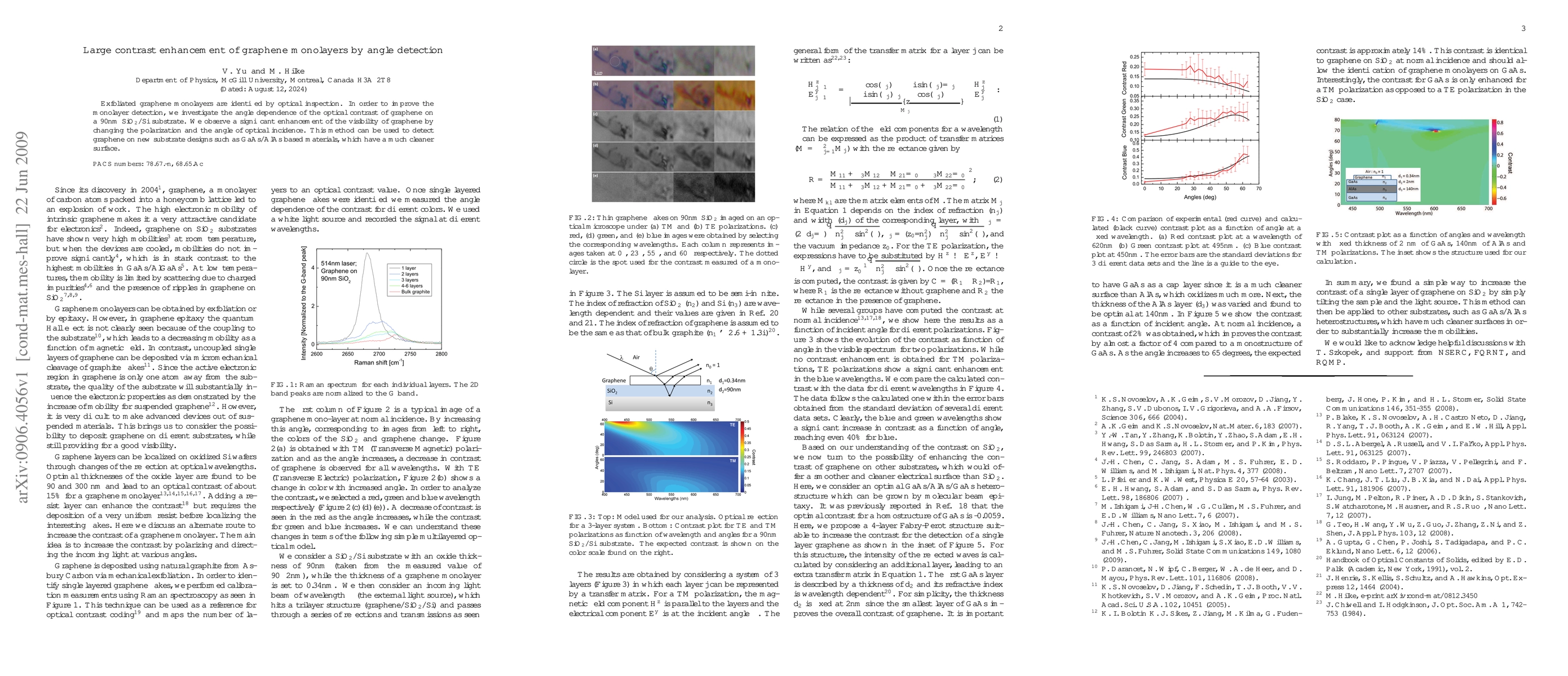 Exfoliated graphene monolayers are identified by optical inspection. In order to improve the monolayer detection, we investigate the angle dependence of the optical contrast of graphene on a 90nm SiO$_2$/Si substrate. We observe a significant enhancement of the visibility of graphene by changing the polarization and the angle of optical incidence. This method can be used to detect graphene on new substrate designs such as GaAs/AlAs based materials, which have a much cleaner surface.