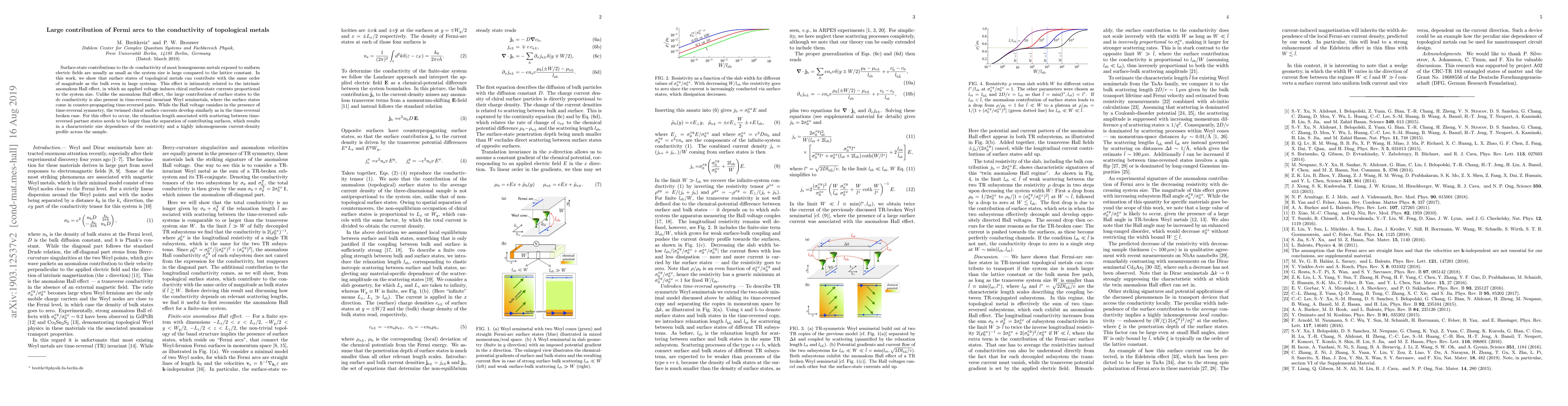 Surface-state contributions to the dc conductivity of most homogeneous metals exposed to uniform electric fields are usually as small as the system size is large compared to the lattice constant. In this work, we show that surface states of topological metals can contribute with the same order of magnitude as the bulk even in large systems. This effect is intimately related to the intrinsic anomalous Hall effect, in which an applied voltage induces chiral surface-state currents proportional to the system size. Unlike the anomalous Hall effect, the large contribution of surface states to the dc conductivity is also present in time-reversal invariant Weyl semimetals, where the surface states come in counter-propagating time-reversed pairs. While the Hall voltage vanishes in the presence of time-reversal symmetry, the twinned chiral surface currents develop similarly as in the time-reversal broken case. For this effect to occur, the relaxation length associated with scattering between time-reversed partner states needs to be larger than the separation of contributing surfaces, which results in a characteristic size dependence of the resistivity and a highly inhomogeneous current-density profile across the sample.