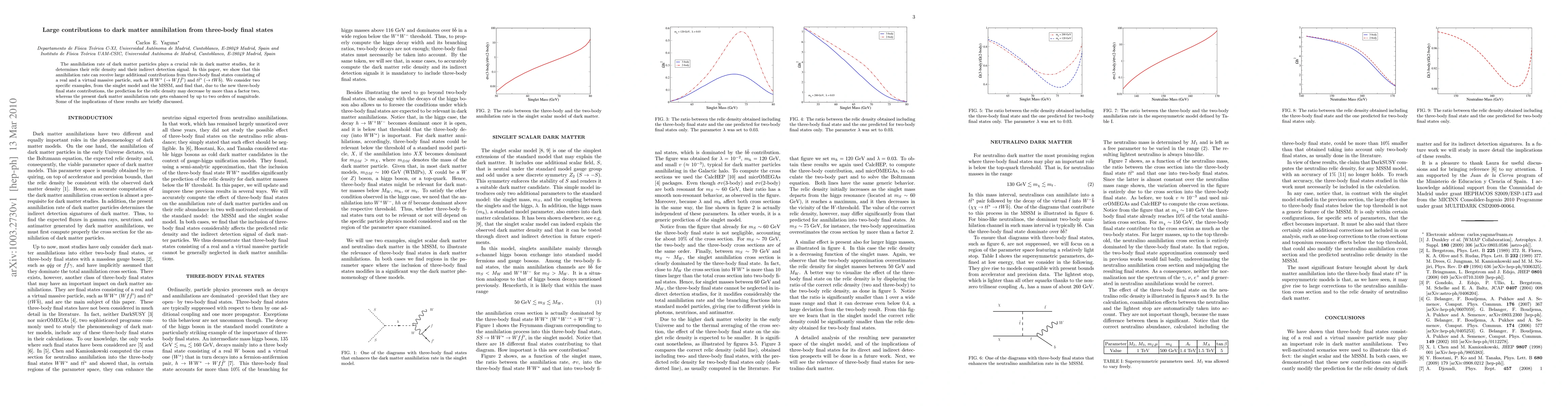 This paper investigates how three-body final states in dark matter annihilation can significantly alter the annihilation rate, potentially reducing the relic density by more than a factor of two and enhancing the current annihilation rate by up to two orders of magnitude. The study considers models from the singlet and MSSM frameworks.