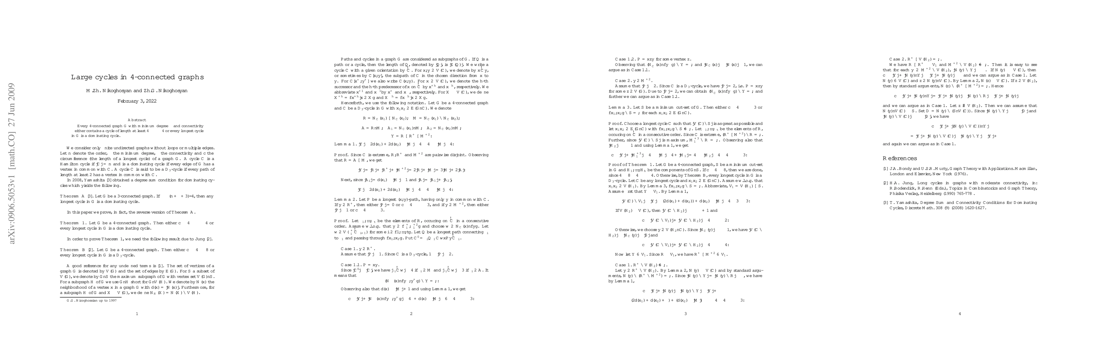 Every 4-connected graph $G$ with minimum degree $\delta$ and connectivity $\kappa$ either contains a cycle of length at least $4\delta-\kappa-4$ or every longest cycle in $G$ is a dominating cycle.