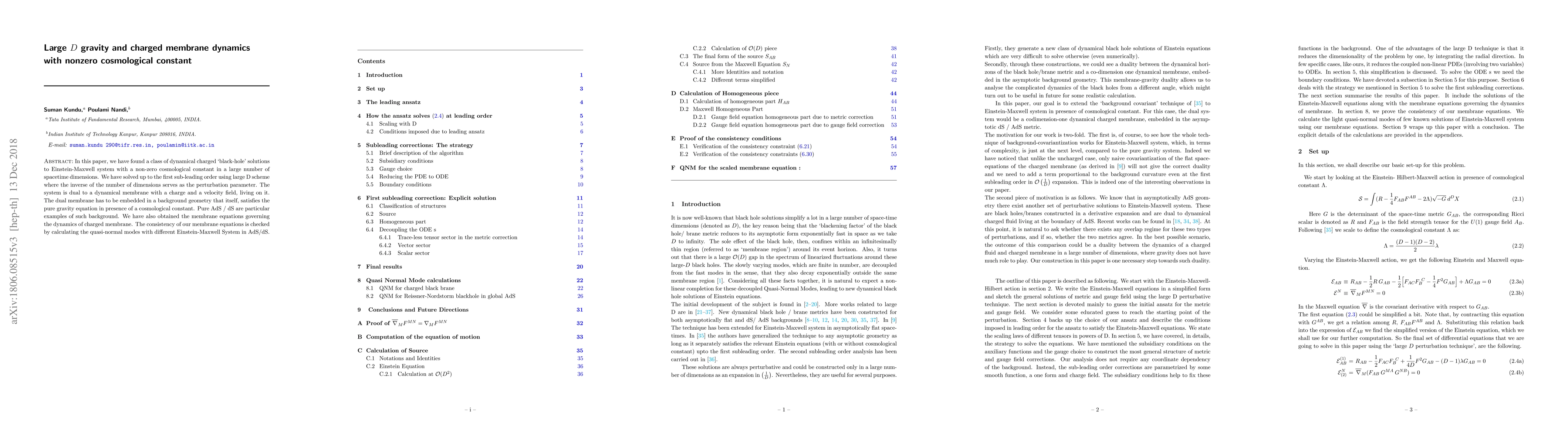 In this paper, we have found a class of dynamical charged 'black-hole' solutions to Einstein-Maxwell system with a non-zero cosmological constant in a large number of spacetime dimensions. We have solved up to the first sub-leading order using large D scheme where the inverse of the number of dimensions serves as the perturbation parameter. The system is dual to a dynamical membrane with a charge and a velocity field, living on it. The dual membrane has to be embedded in a background geometry that itself, satisfies the pure gravity equation in presence of a cosmological constant. Pure AdS / dS are particular examples of such background. We have also obtained the membrane equations governing the dynamics of the charged membrane. The consistency of our membrane equations is checked by calculating the quasi-normal modes with different Einstein-Maxwell systems in AdS/dS.